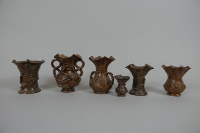6 Petits vases en grès du Beauvaisis à décor avec applique d…