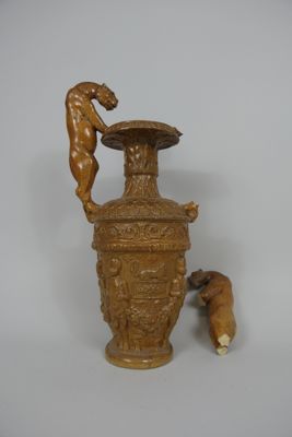Verseuse en grès salé, le bec en forme de tête d’animal.