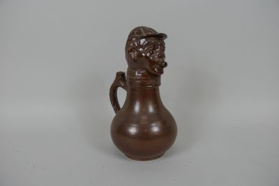 Pichet à absinthe en grès vernissé brun à tête de Jockey fum…