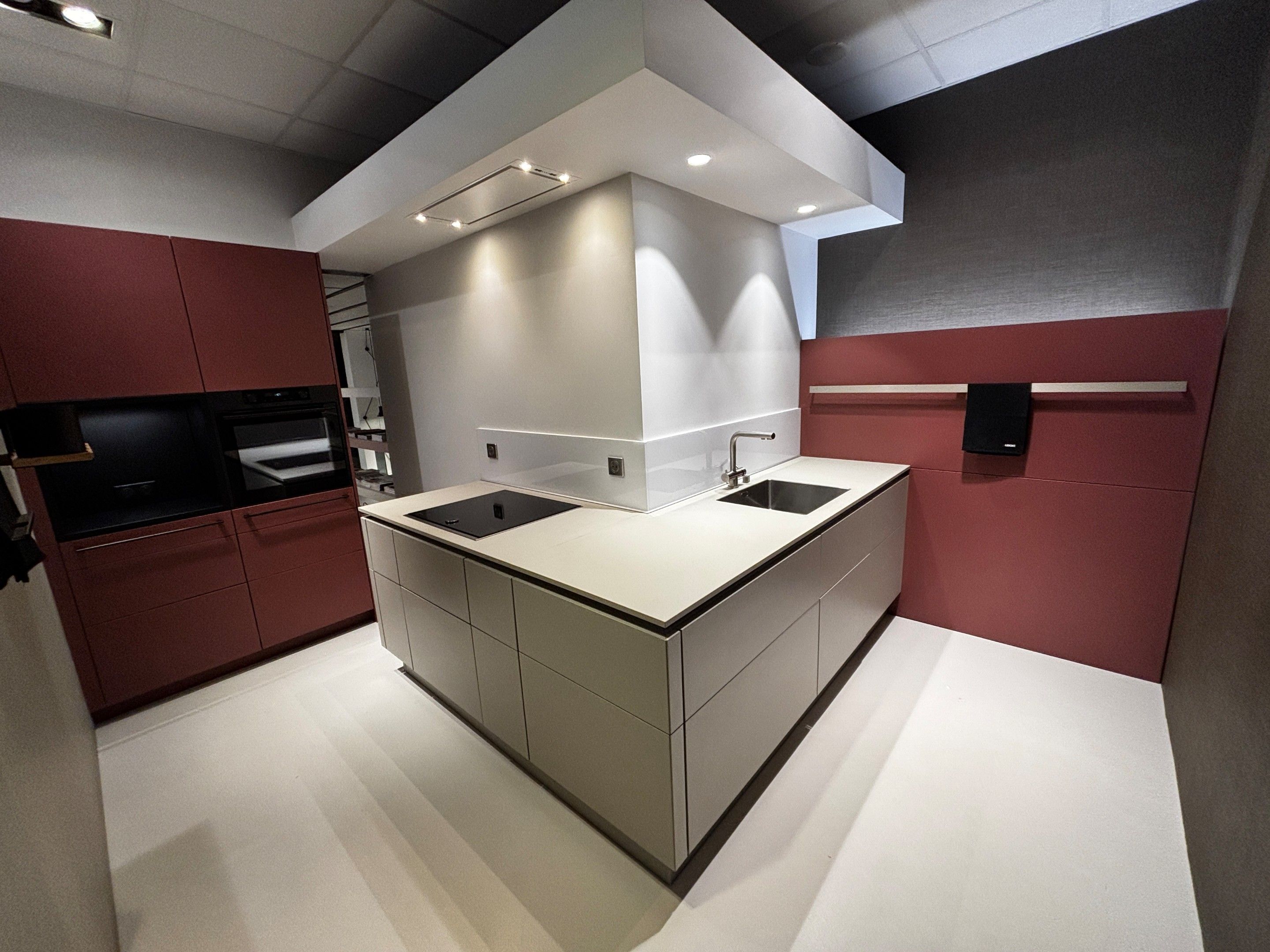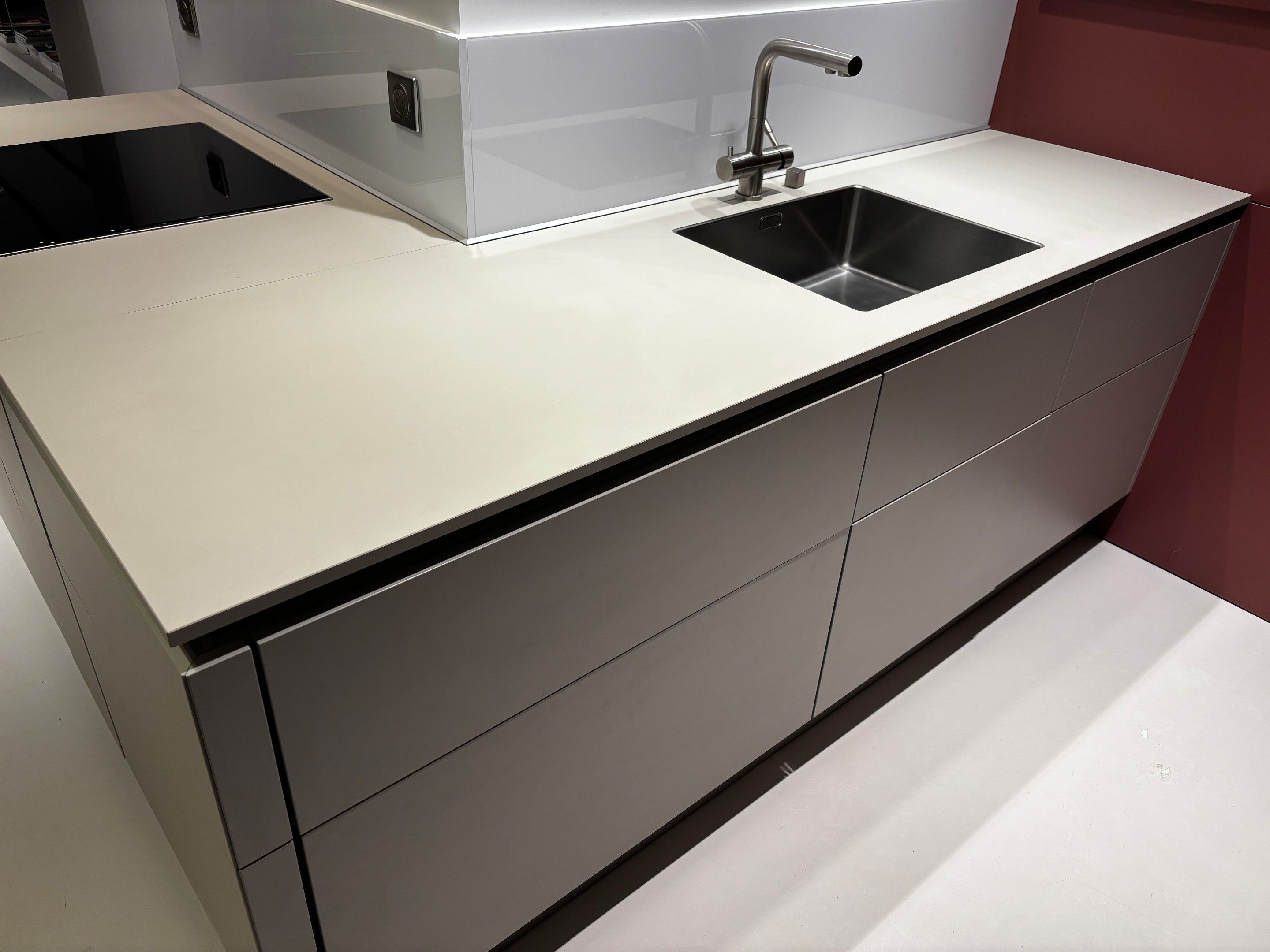 - éléments bas en L composés de 10 tiroirs ouverture passe-main avec évier cuve et mitigeur FRANKE (L : 1.91 m + 2.19 m / l : 0.68 m)