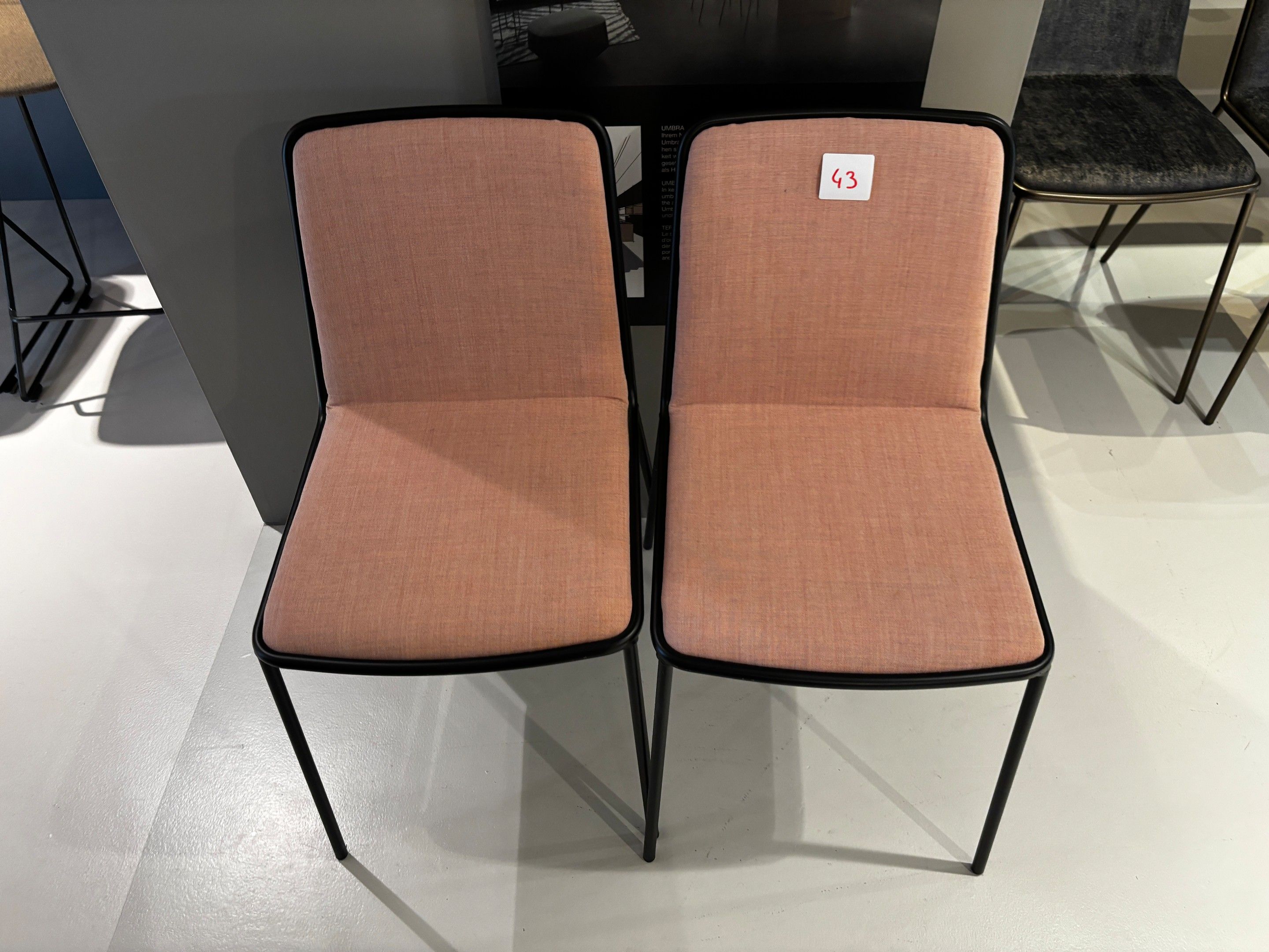 2 chaises pétement métal et tissu rose