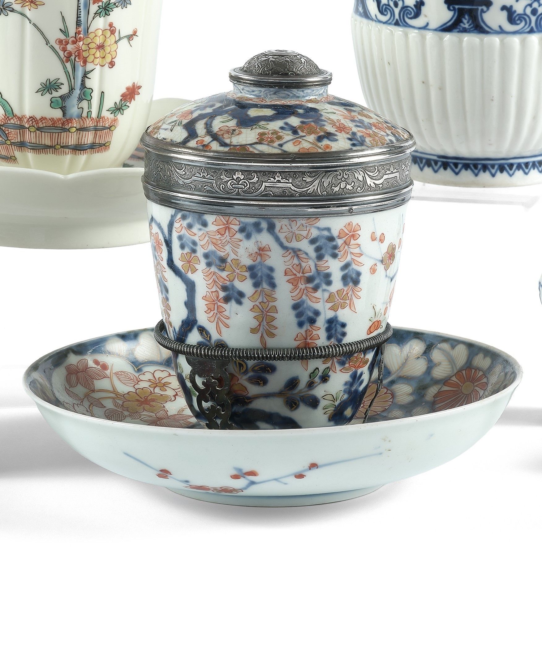 JAPON Timbale couverte et une soucoupe en porcelaine dure à …