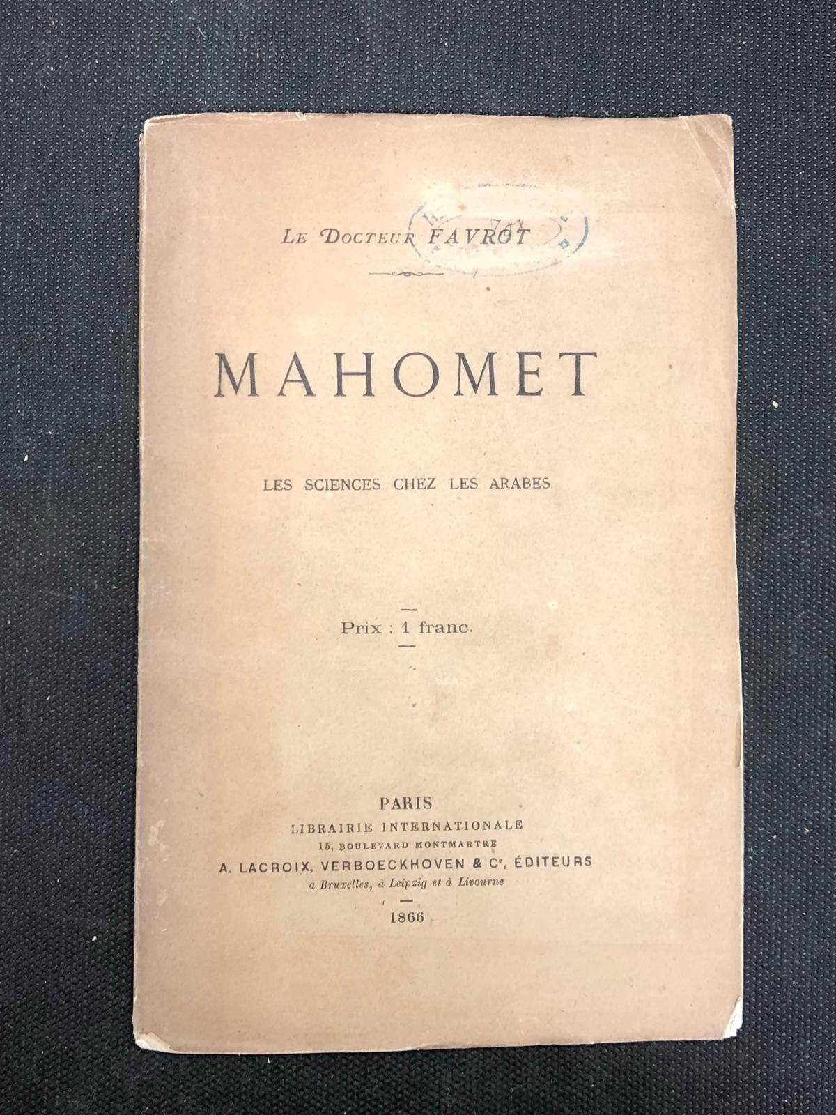 - FAVROT - Mahomet les sciences chez les arabes - Paris, 1866 - Fascicule petit in 8°, broché (couverture poussiéreuse avec tampon humide frotté)