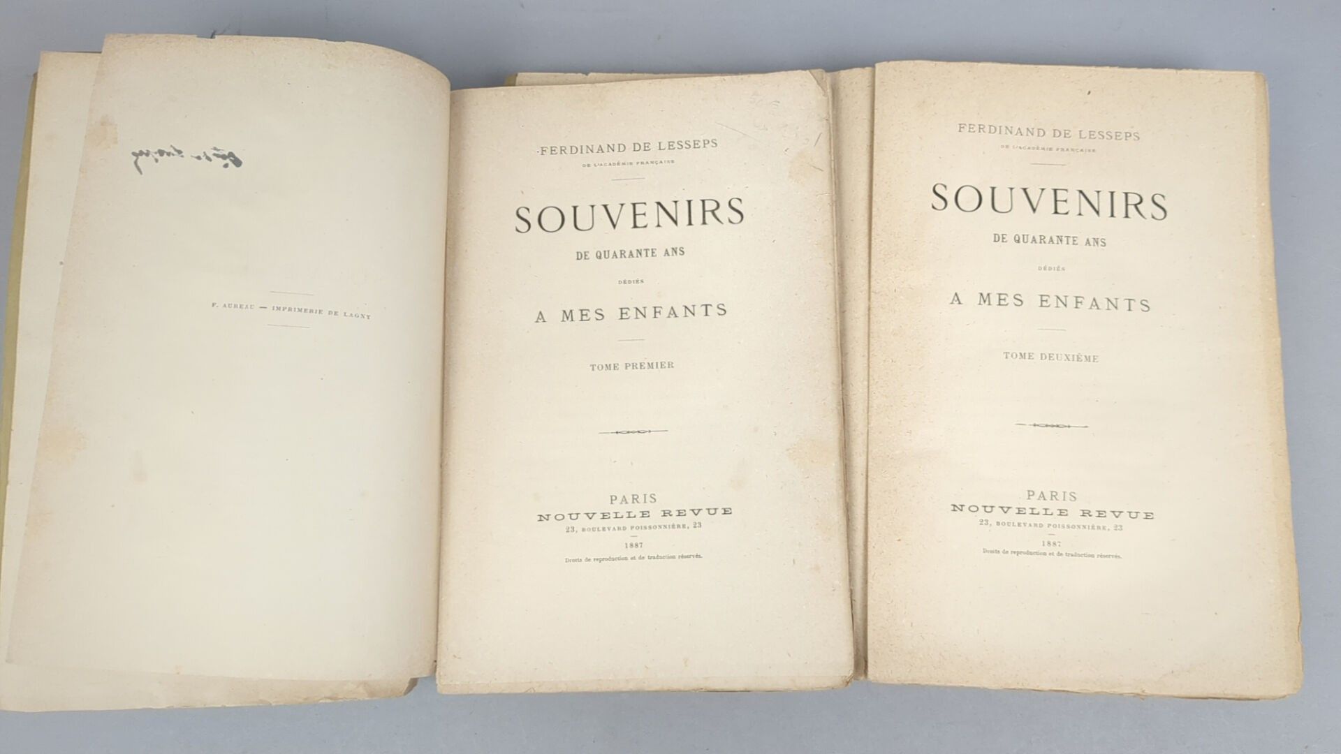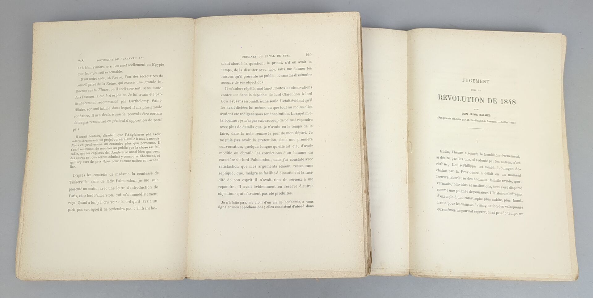[Égypte] LESSEPS (Ferdinand de). Souvenirs de quarante ans. Paris, Nouvelle Revue, 1887. 2 volumes in-8 brochés, non coupés. Manques en pied de dos.