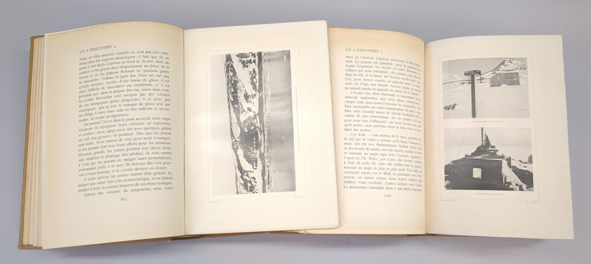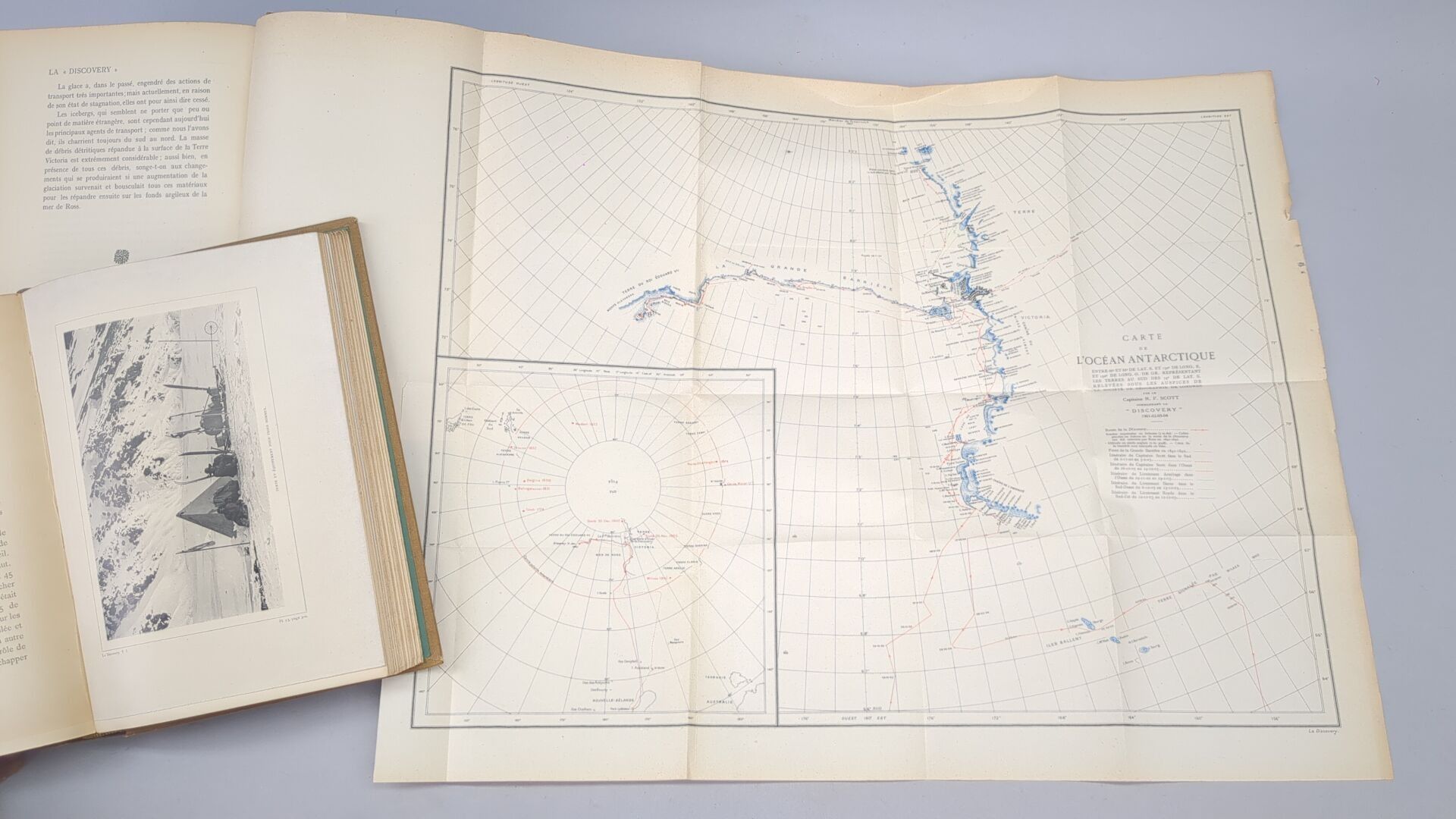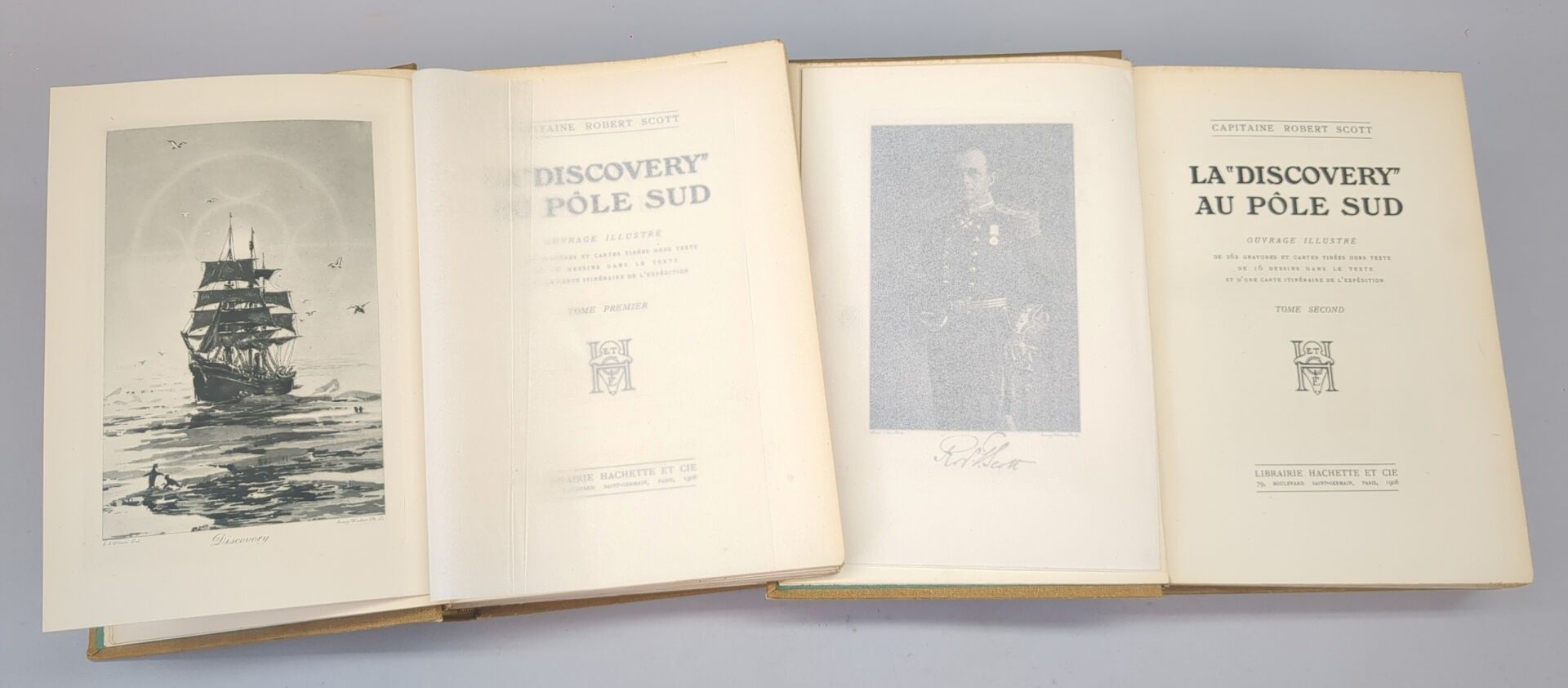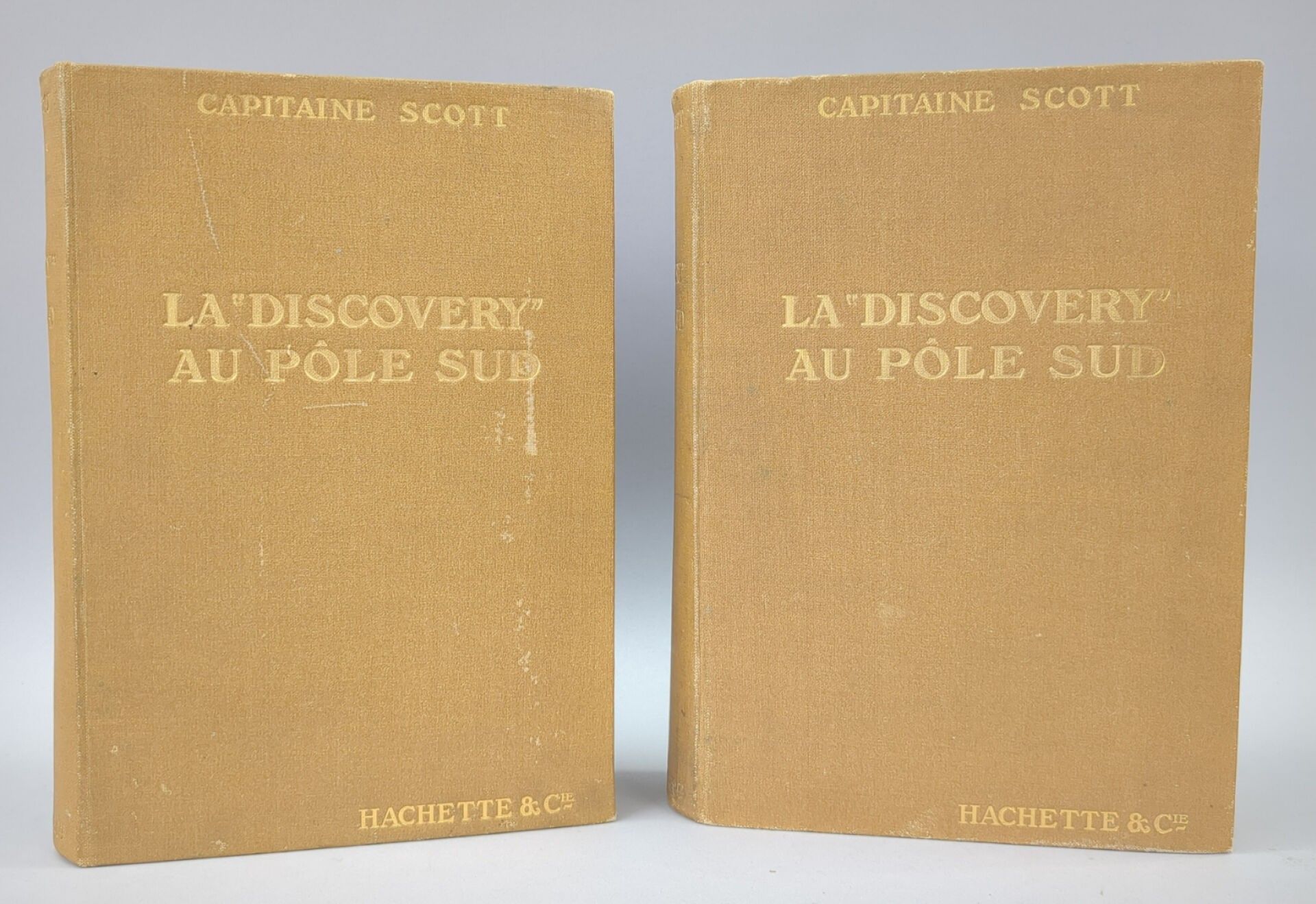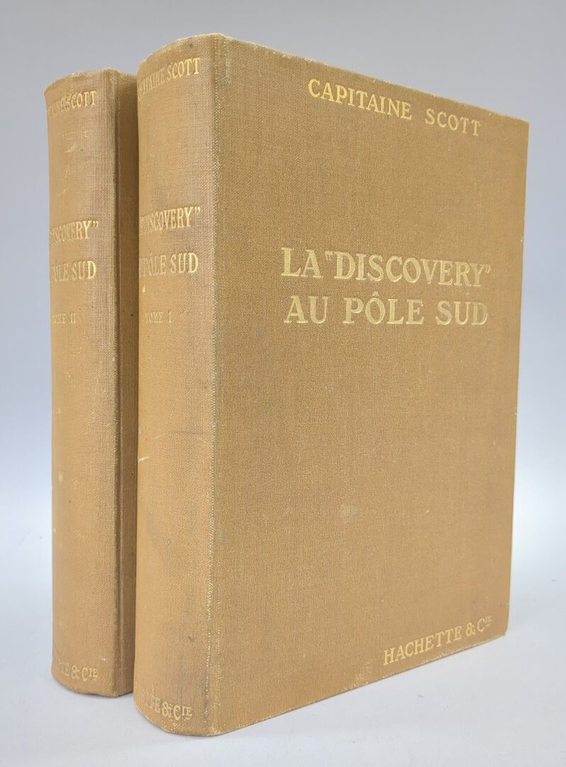 SCOTT (Capitaine Robert). La "Discovery" au pôle sud. Paris ; Librairie Hachette et Cie, 1908. 2 volumes grand in-8, pleine toile ocre de l'éditeur. VIII, 390 pp., (1) f. et (2) ff., 342 pp.