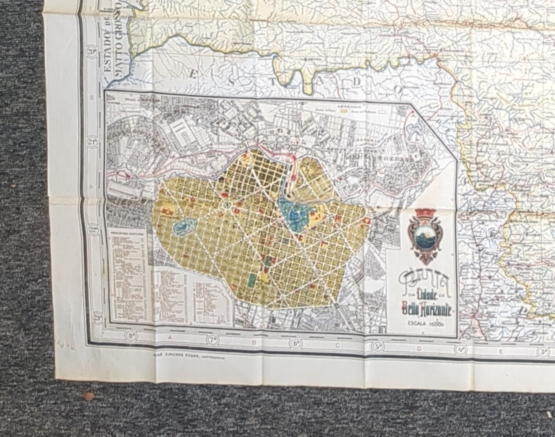 Importante carte en couleurs avec, en bas à gauche, le plan de Bello Horizonte. Complet de son étui en toile brune.