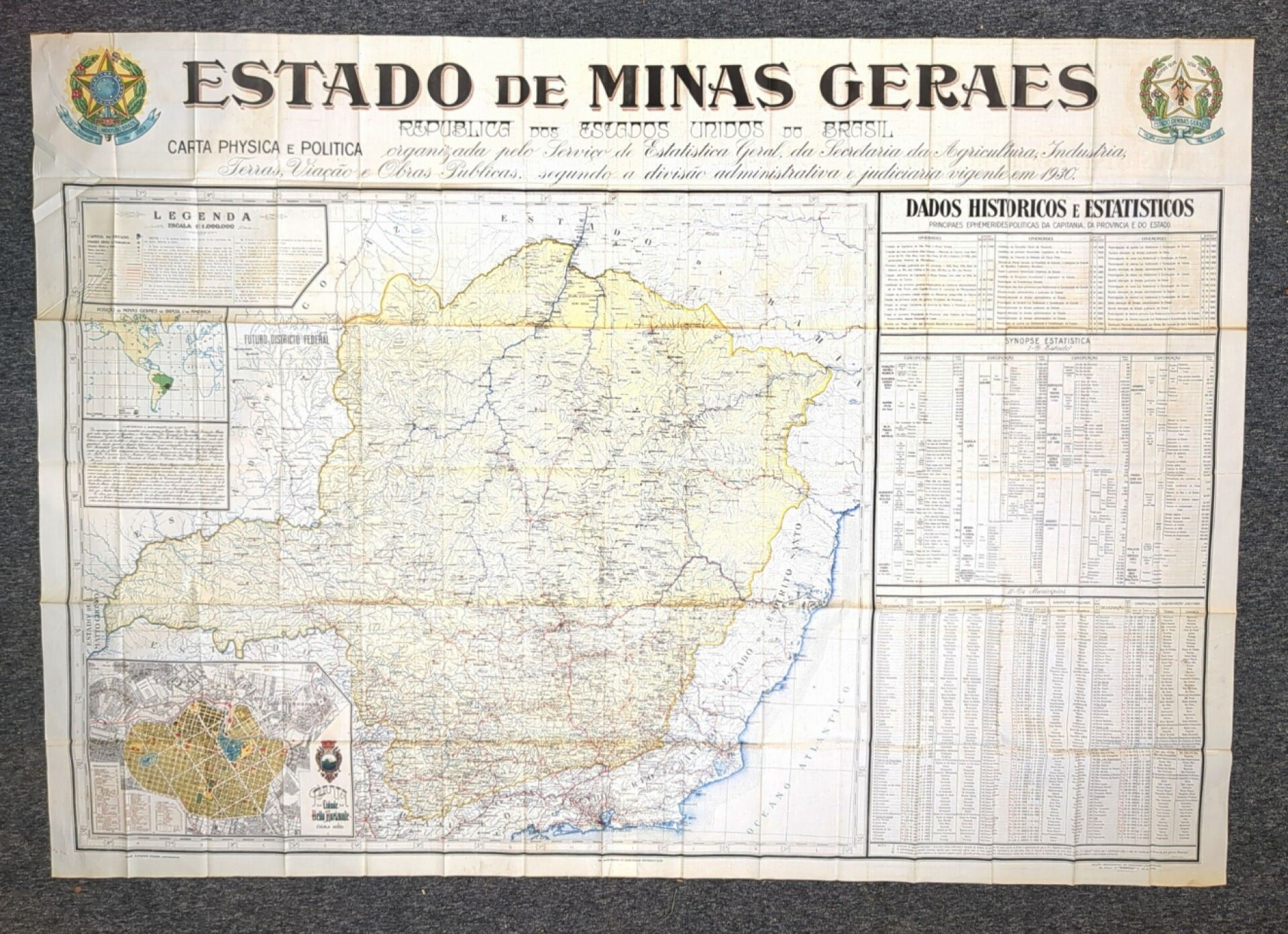 [Brésil] [Cartographie] Estado de Minas Geraes. Carta physica e politica do estado de Minas Geraes. Sao Paulo, Companhia Lithographica Ypiranga. Env. 140 x 192 cm.