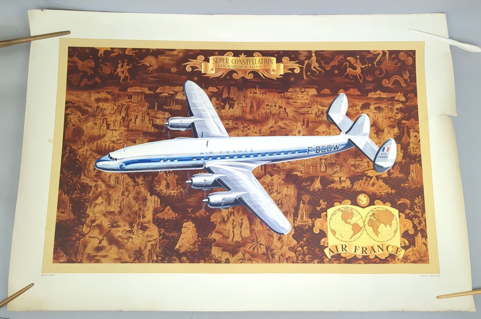 [Lucien BOUCHER (1889 - 1971) (attribué à)]. Affiche Air France - Super Constellation Lockheed. Paris, Perceval, 1953. Env. 71 x 105 cm.