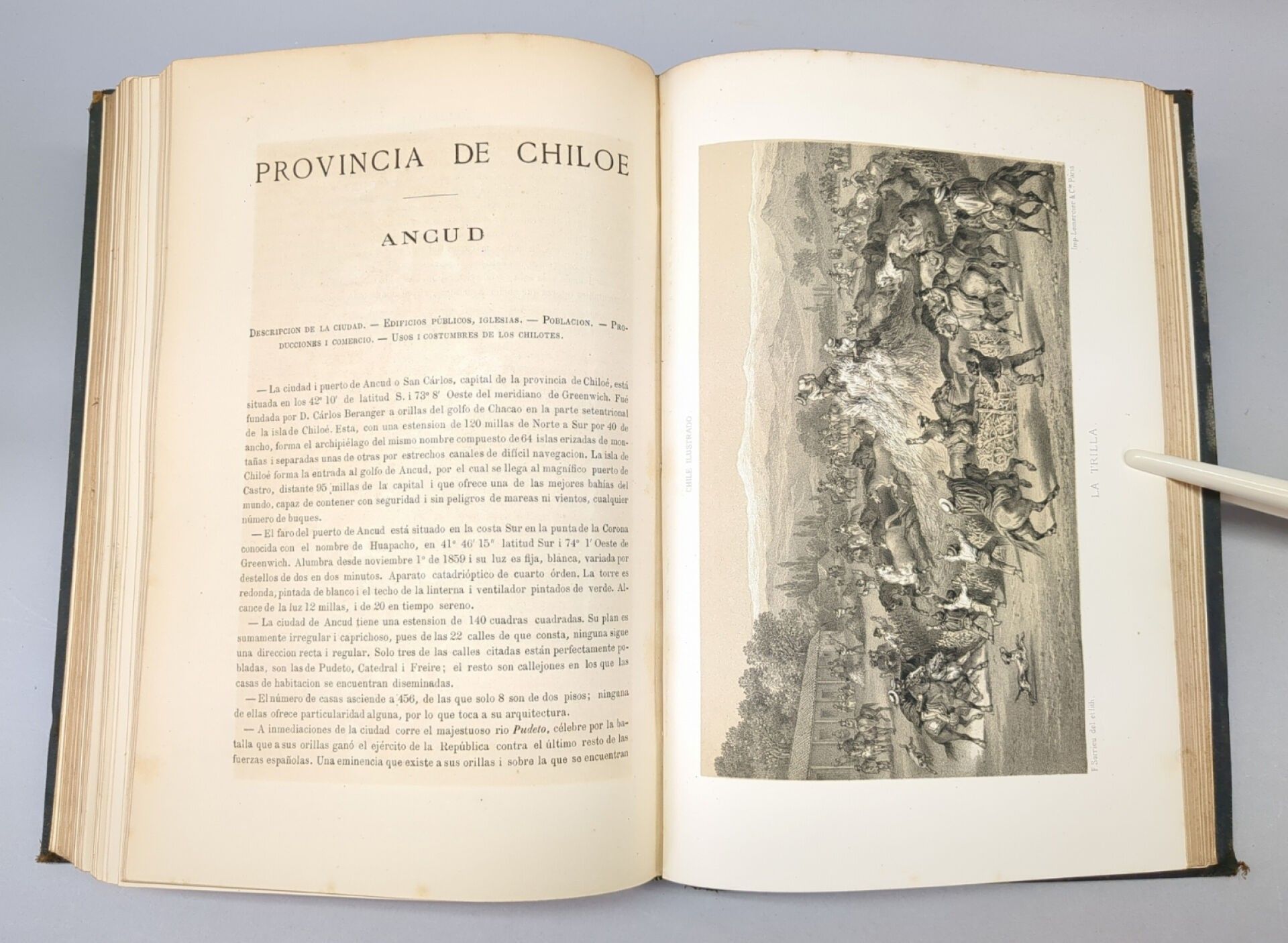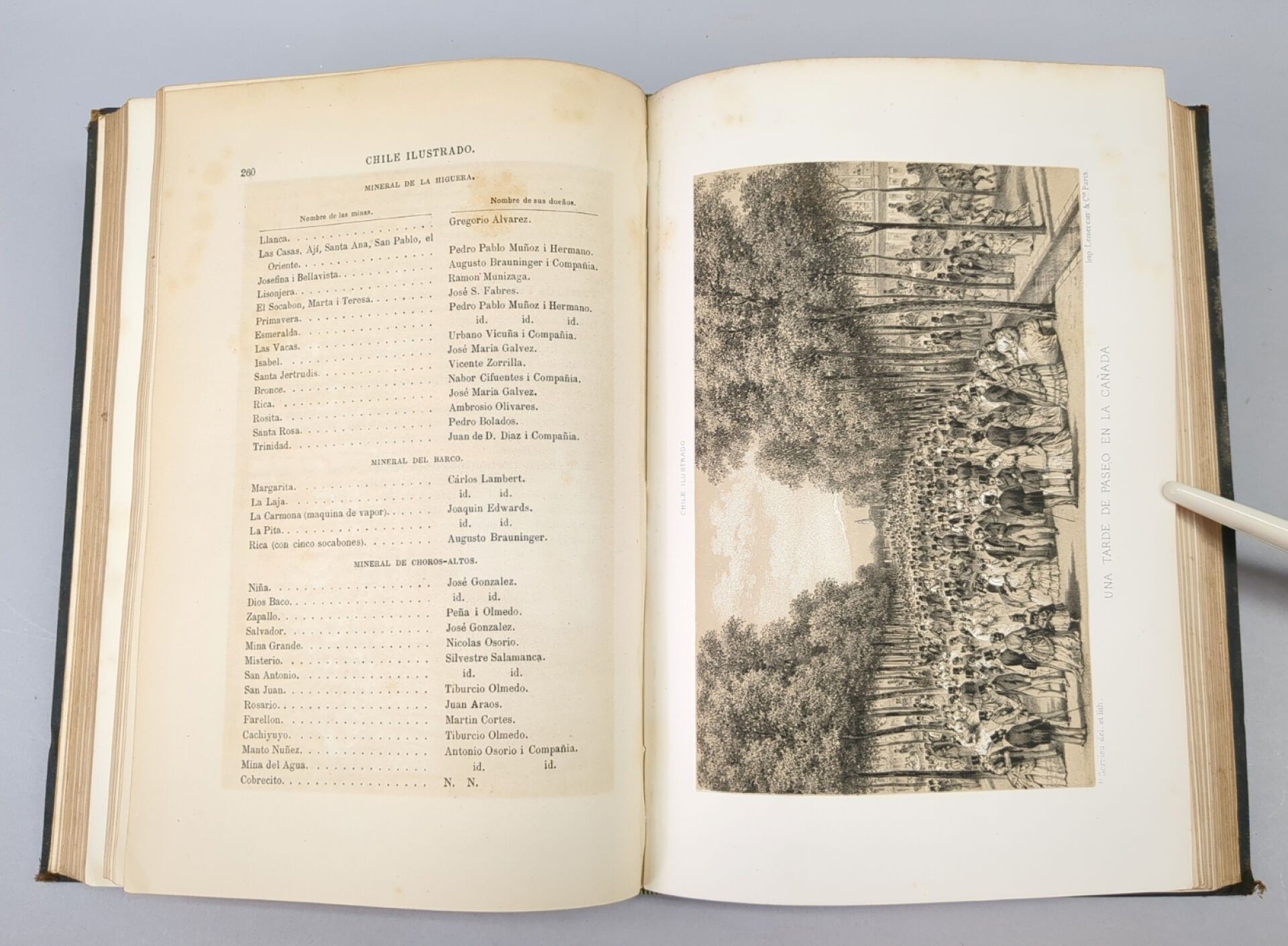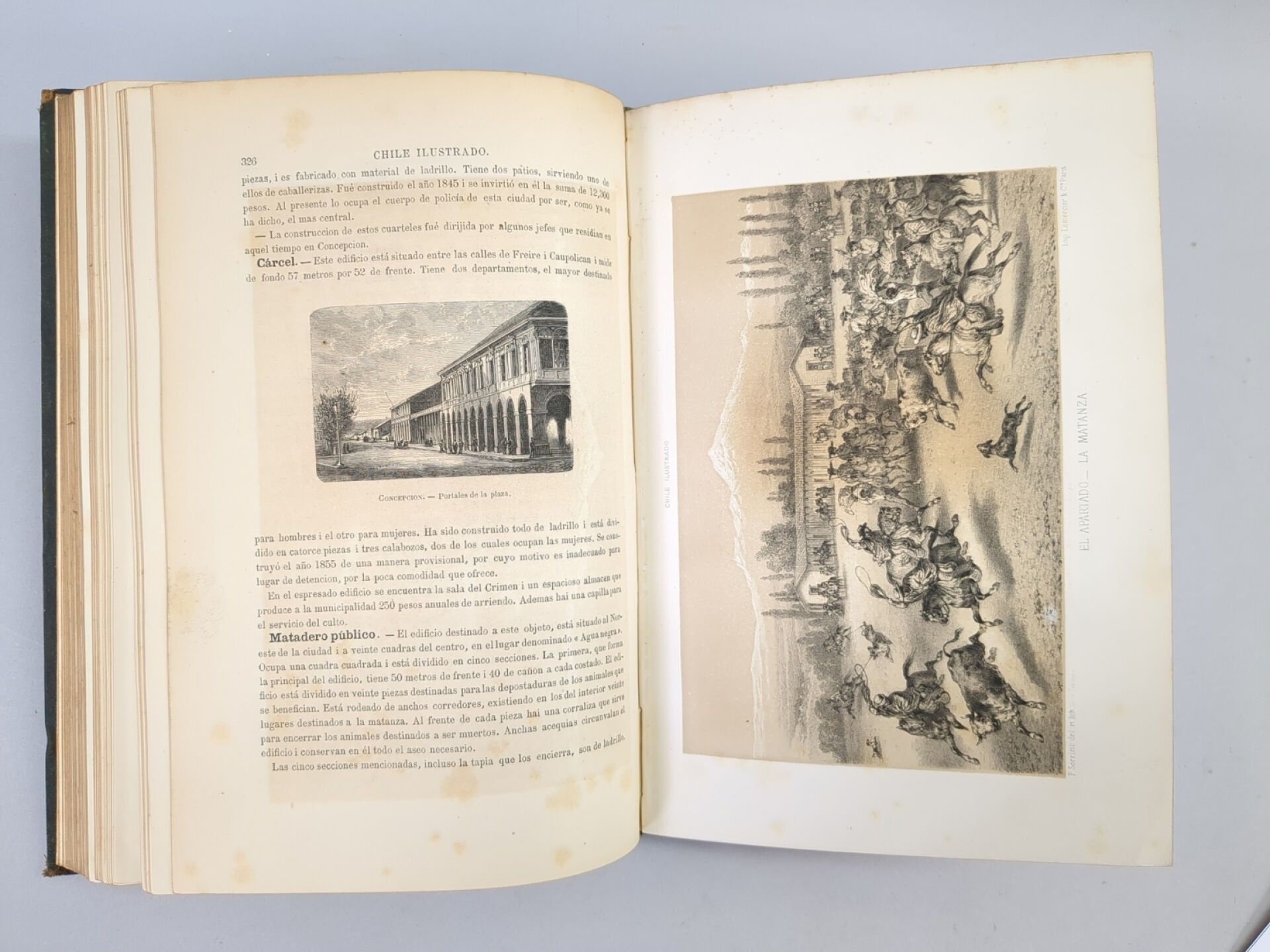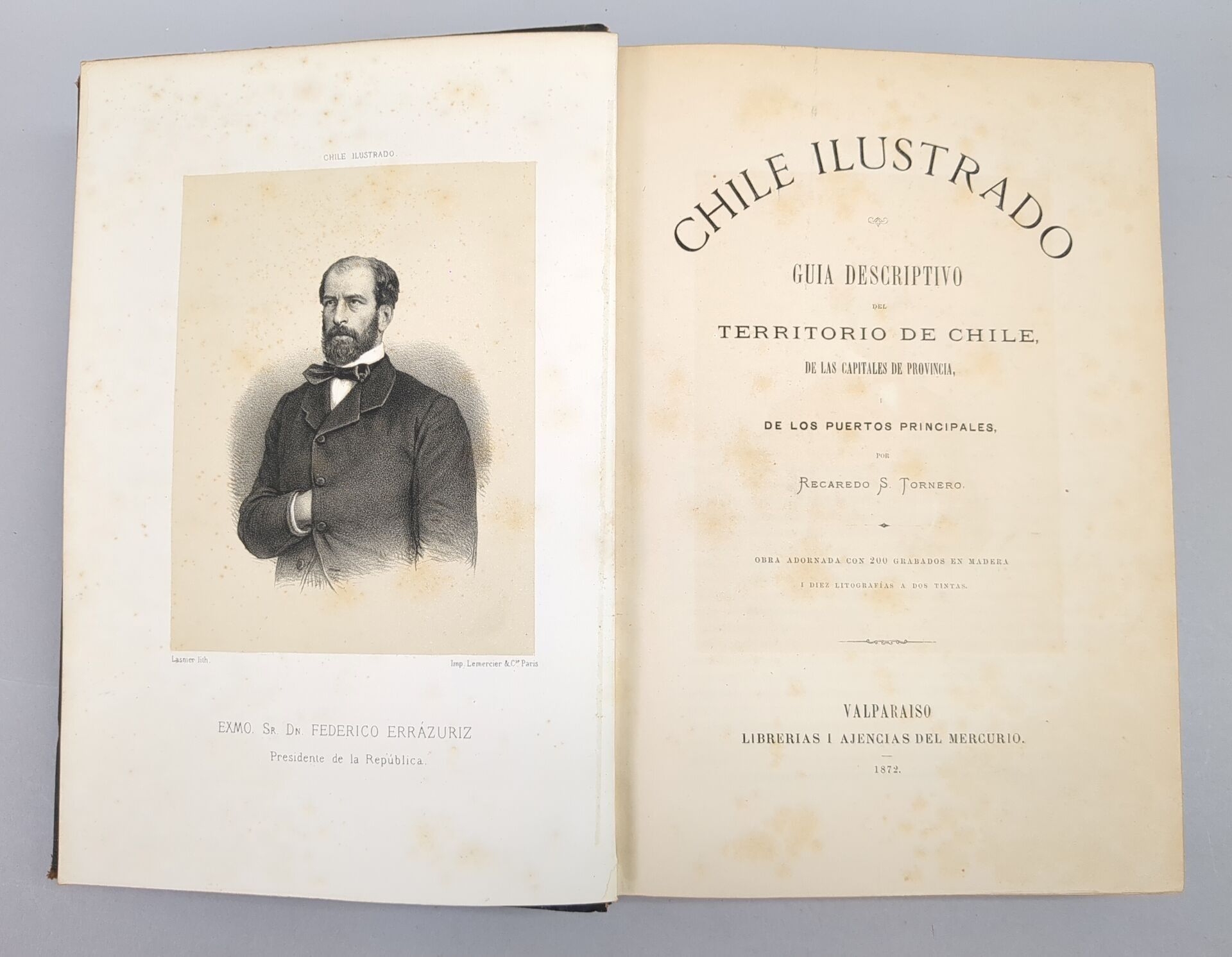 Première et unique édition de la première description richement illustrée du Chili, par l'éditeur et journaliste chilien Recaredo Santos Tornero (1842-1902).