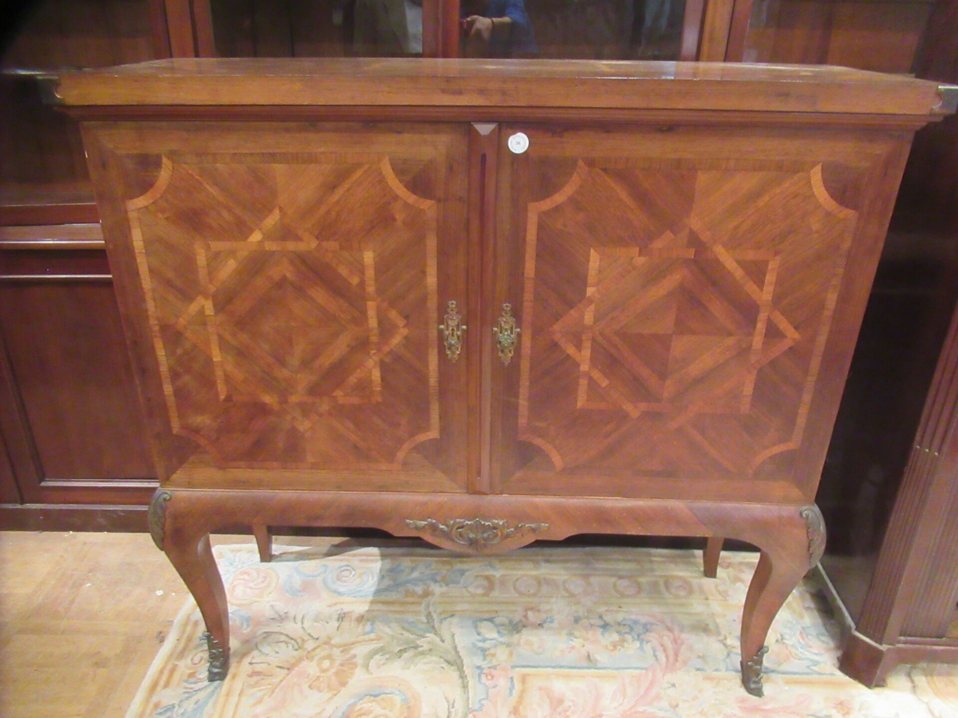 Buffet en marqueterie, garniture de bronze, ouvrant à deux portes, style Louis XV H : 127 cm L : 130 cm P : 42 cm