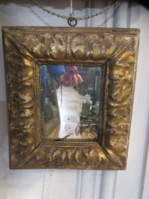Petit miroir, cadre en bois sculpté doré, XVIII/XIXème 40x34…