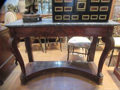Console en placage d'acajou, dessus de marbre, époque Restau…