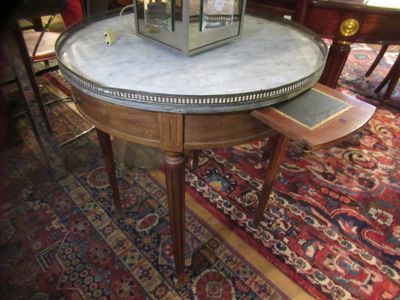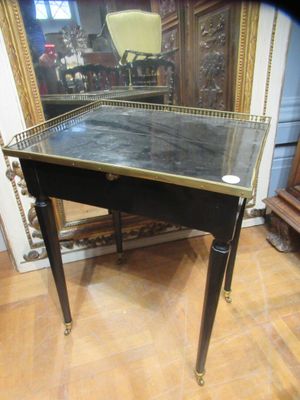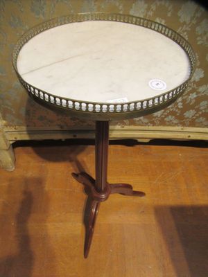 Petite table d'appoint en acajou, dessus de marbre à galerie…