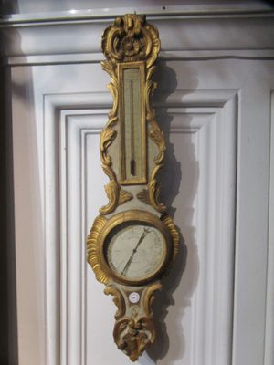 Baromètre, thermomètre "De Réaumur" en bois laqué et doré ép…