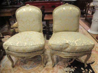 Paire de fauteuils à châssis en bois redoré, travail Vénitie…