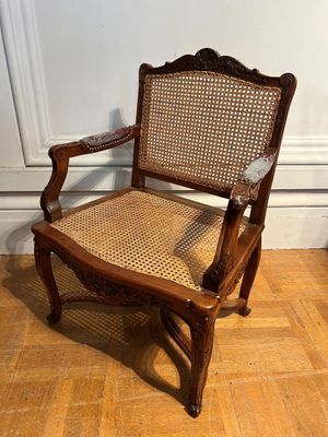 Fauteuil en bois naturel à dossier cabriolet, époque Louis X…