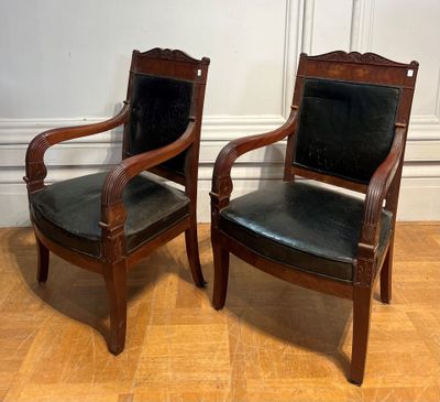Paire de fauteuils en acajou, les accotoirs à motifs de corn…