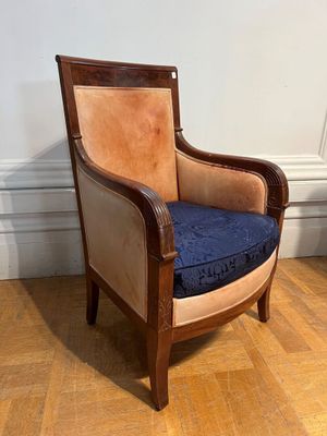 Bergère en acajou, les accotoirs à cornes d'abondance, époqu…