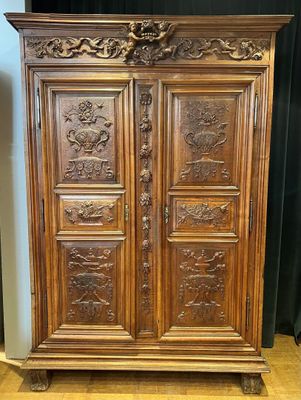 *Importante armoire de mariage en noyer mouluré et sculpté.