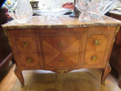Commode en marqueterie ouvrant à cinq tiroirs, dessus de mar…