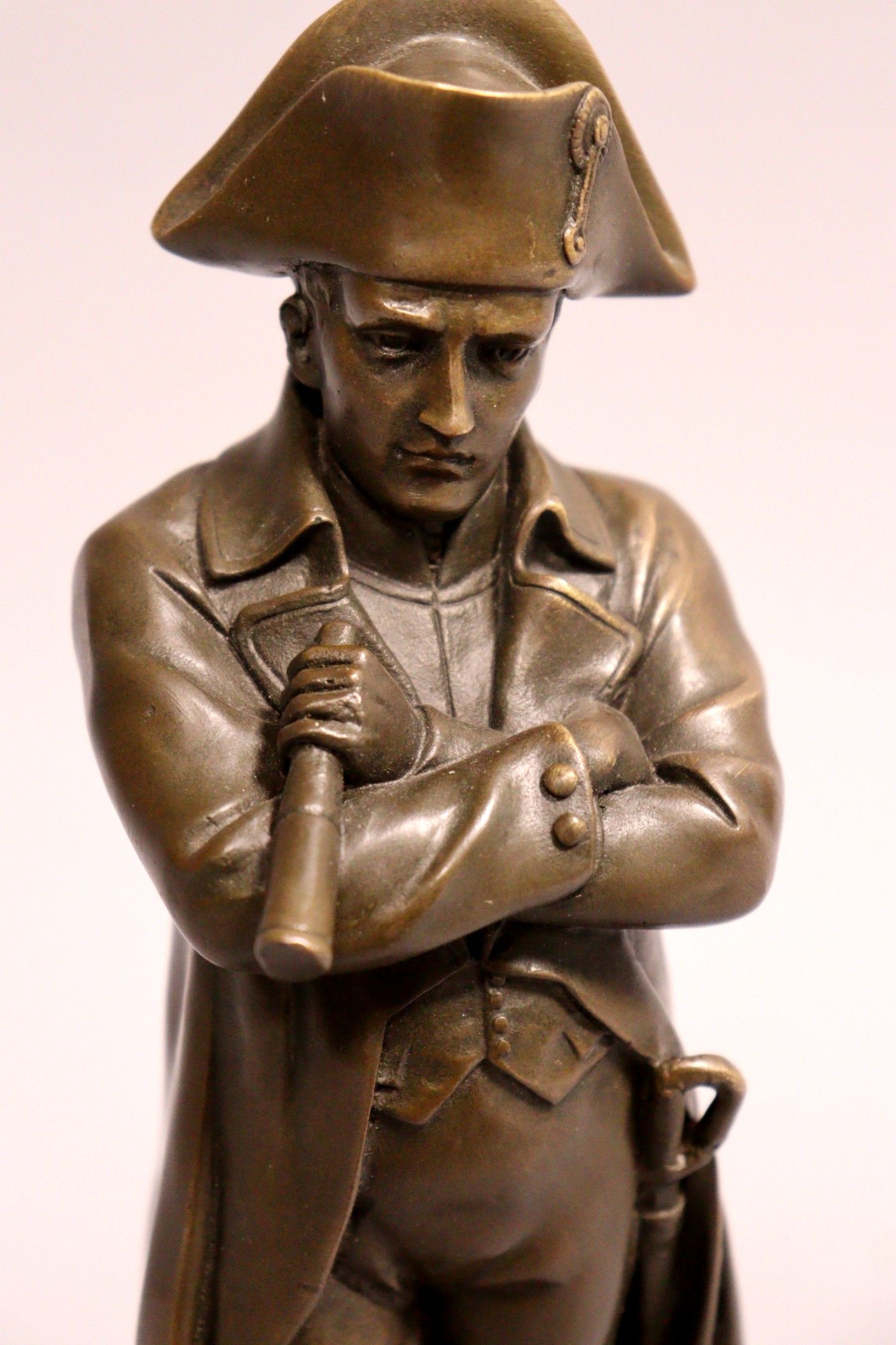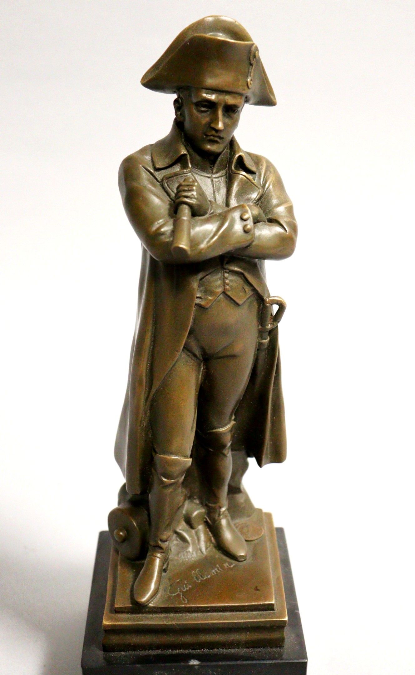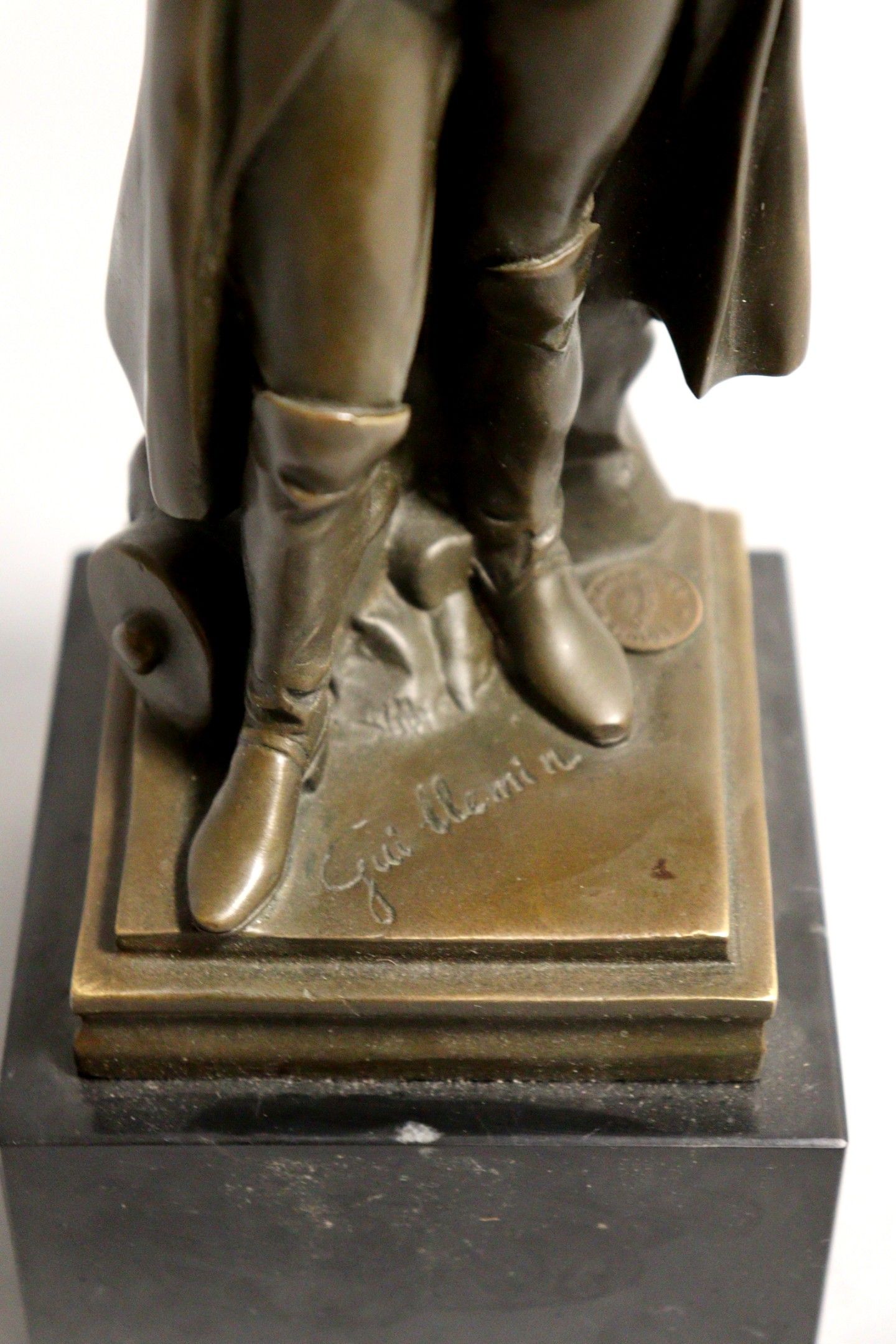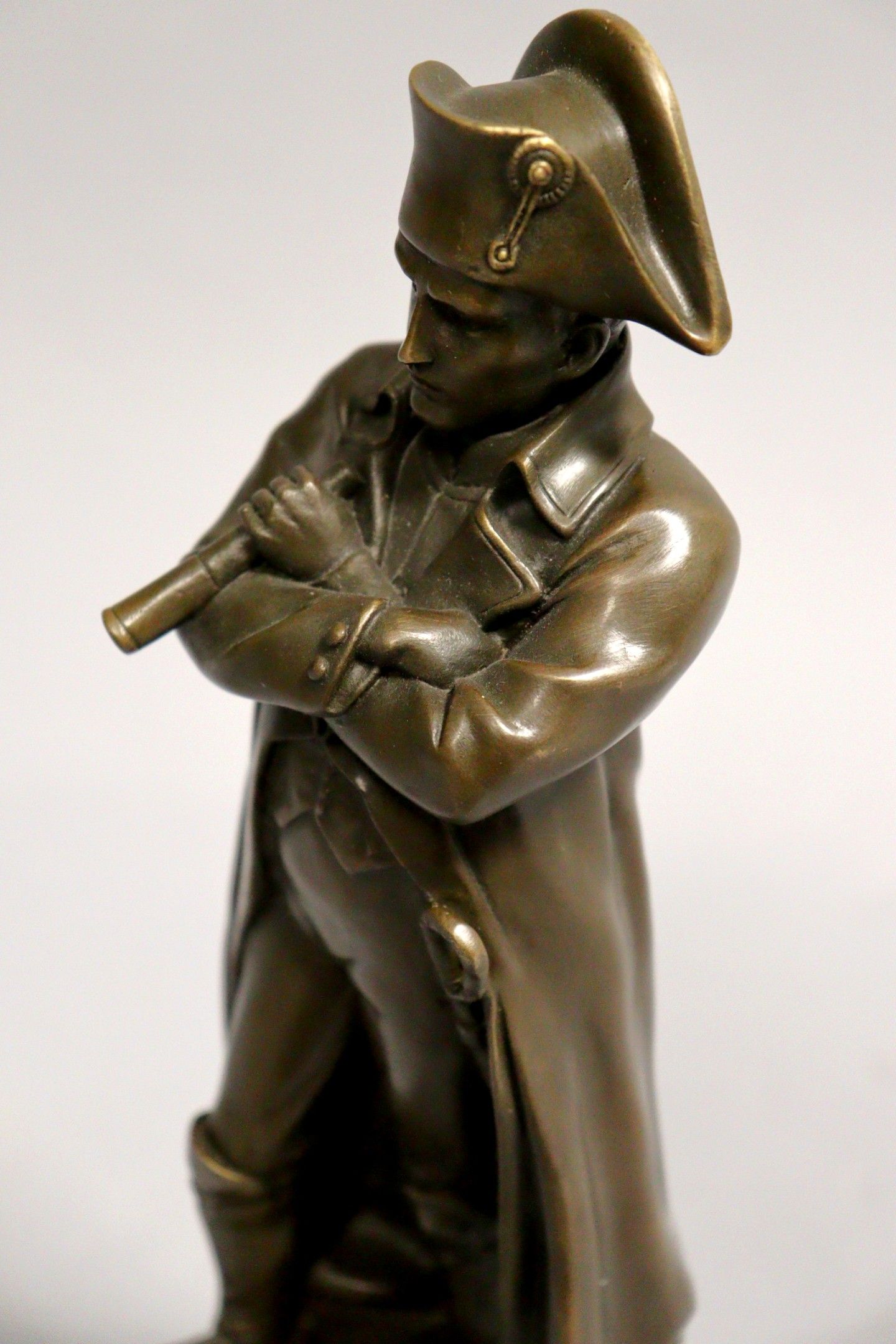 D'après Emile GUILLEMIN (1841-1907). Napoléon Bonaparte debout à la longue vue. Epreuve en bronze à patine médaille, signée sur la terrasse et numérotée "A6806". Cachet du fondeur JB à Paris. Socle en marbre noir. H. : 26 cm sans le socle