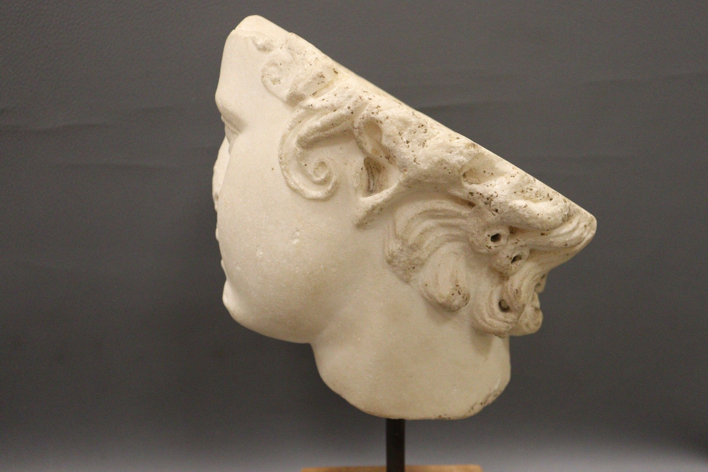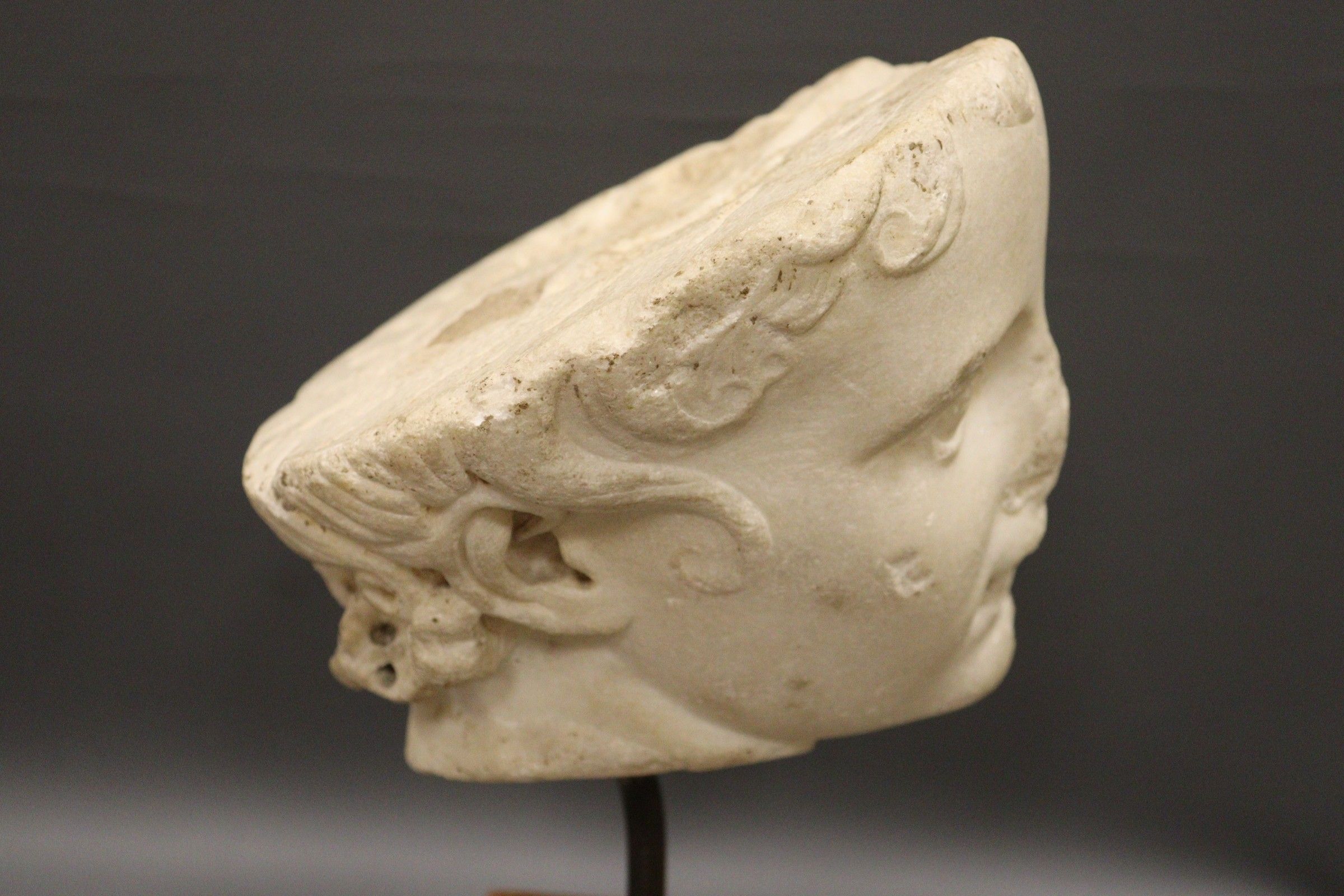 Fragment de tête d’enfant en plâtre en ronde bosse.