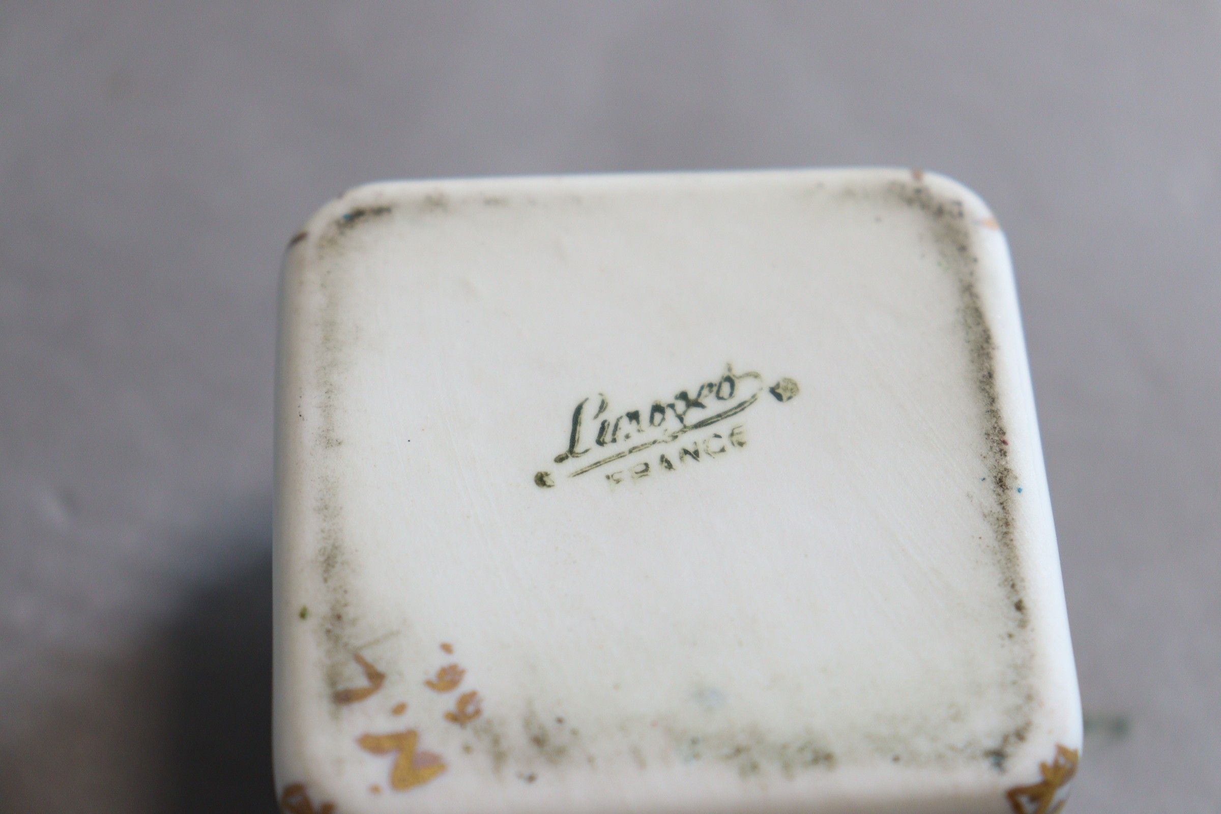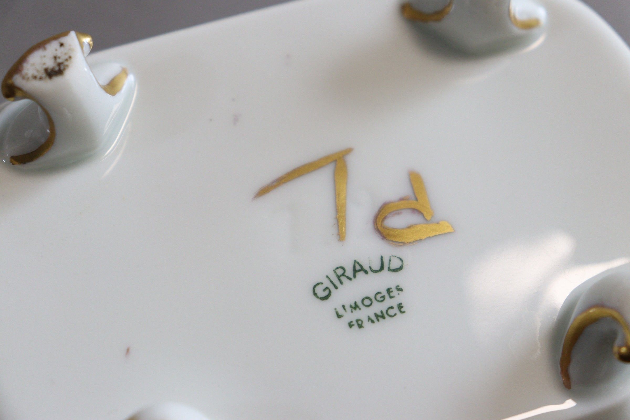 - GIRAUD à Limoges. Boite en porcelaine blanche à décor doré peint d'un coléoptère;