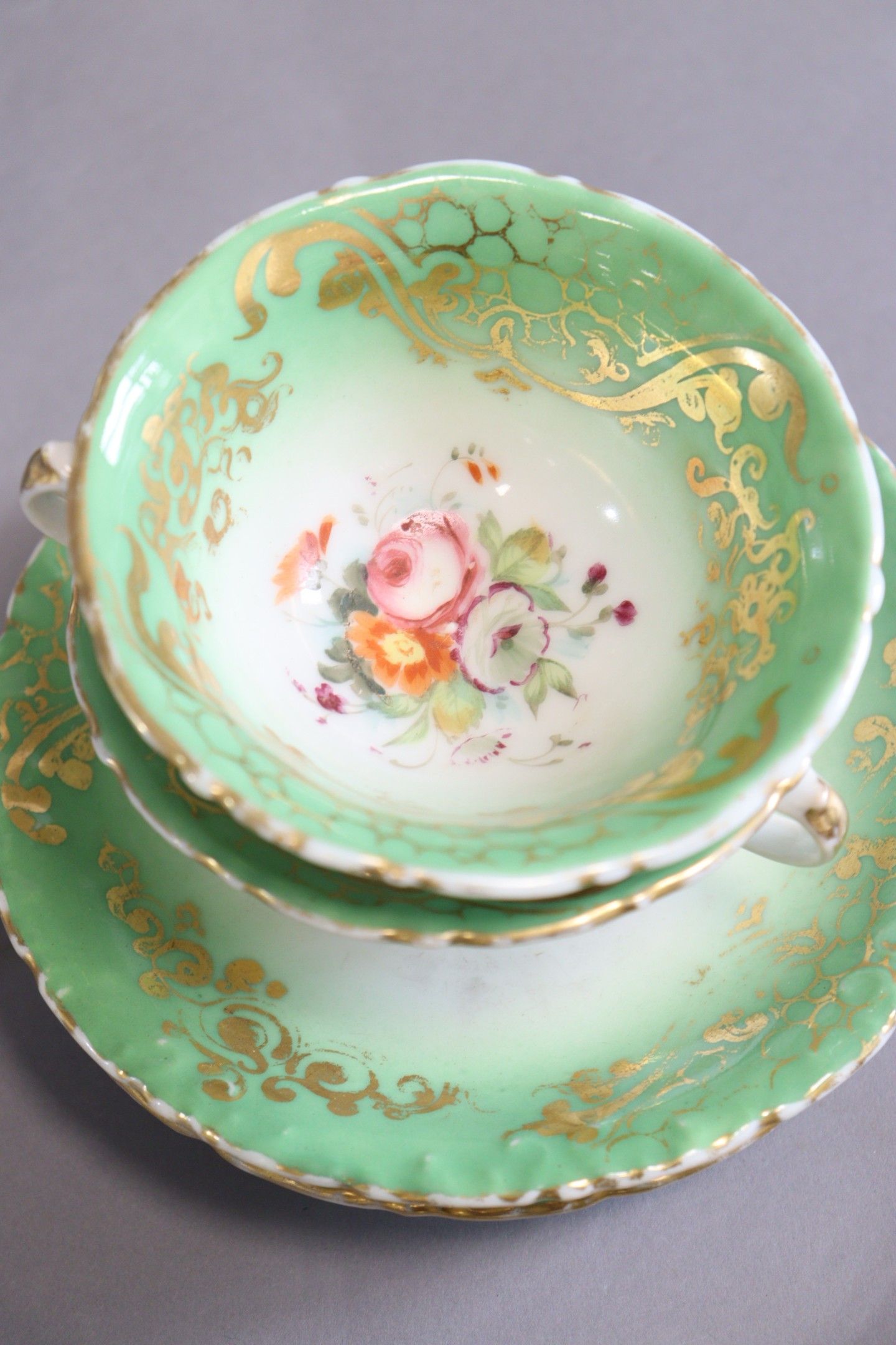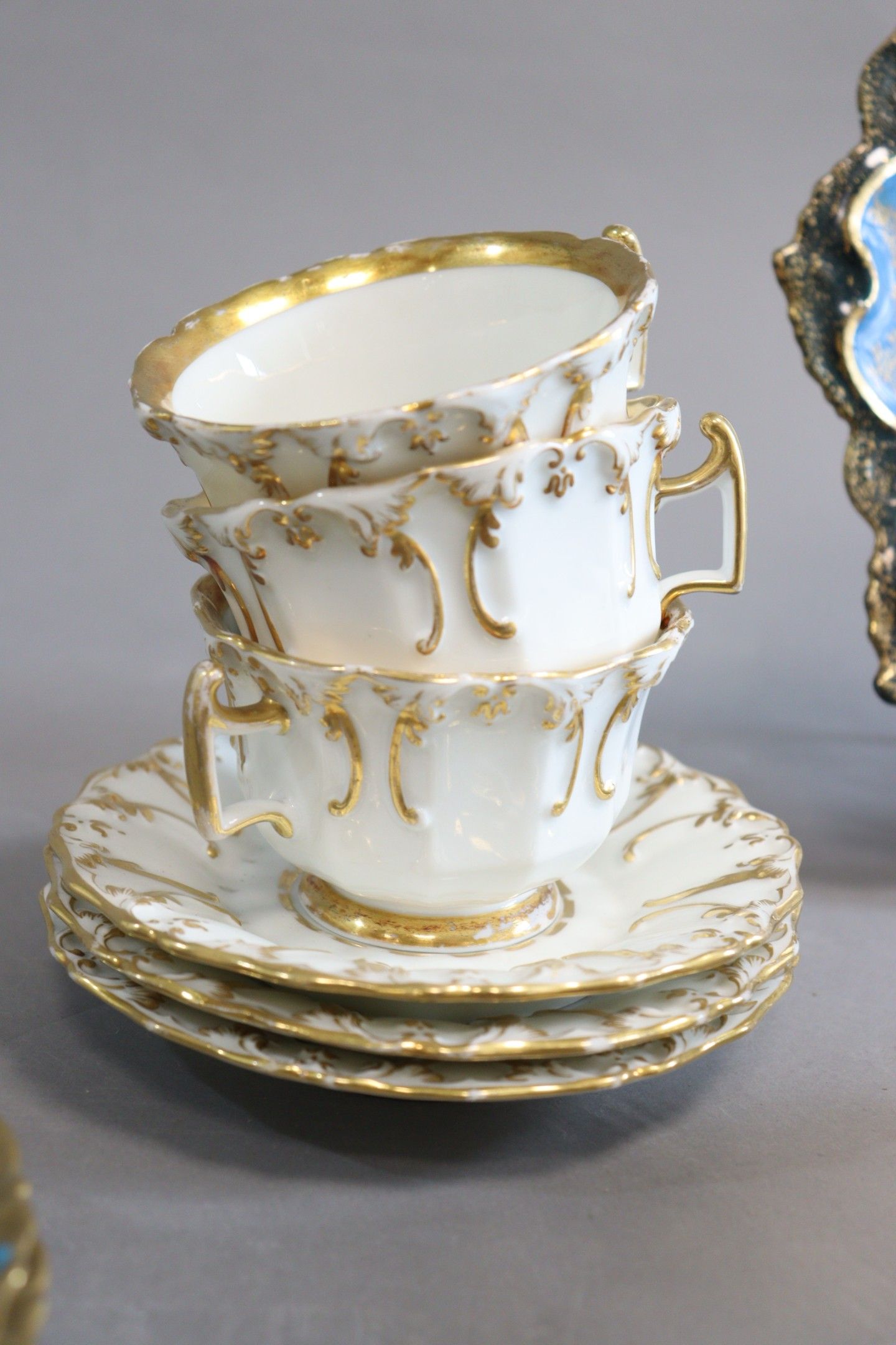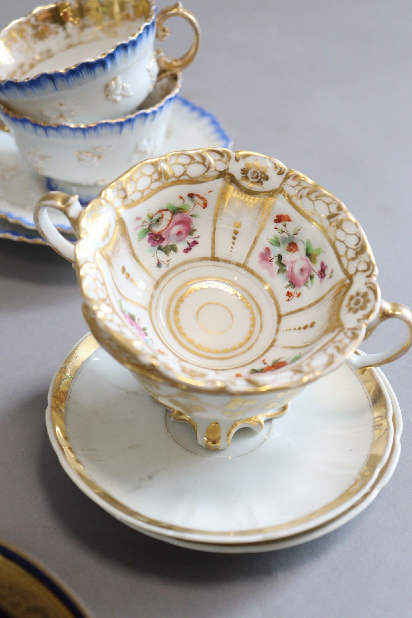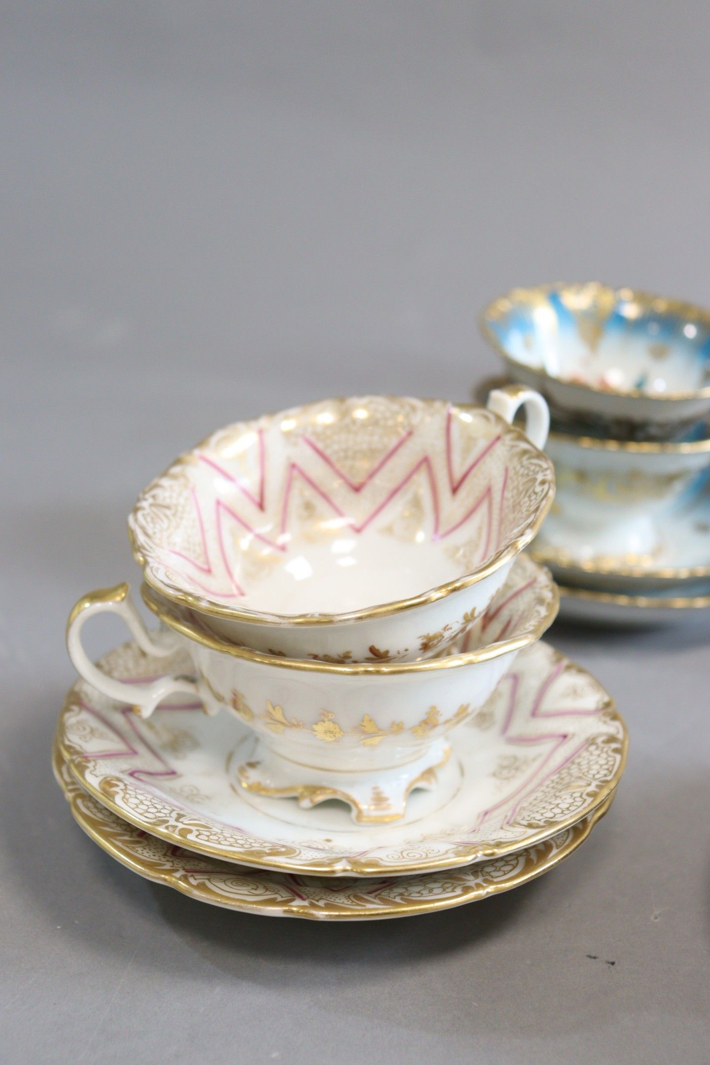 - Douze tasses et sous-tasses dépareillées dorées, certaines à décor de fleurs ;