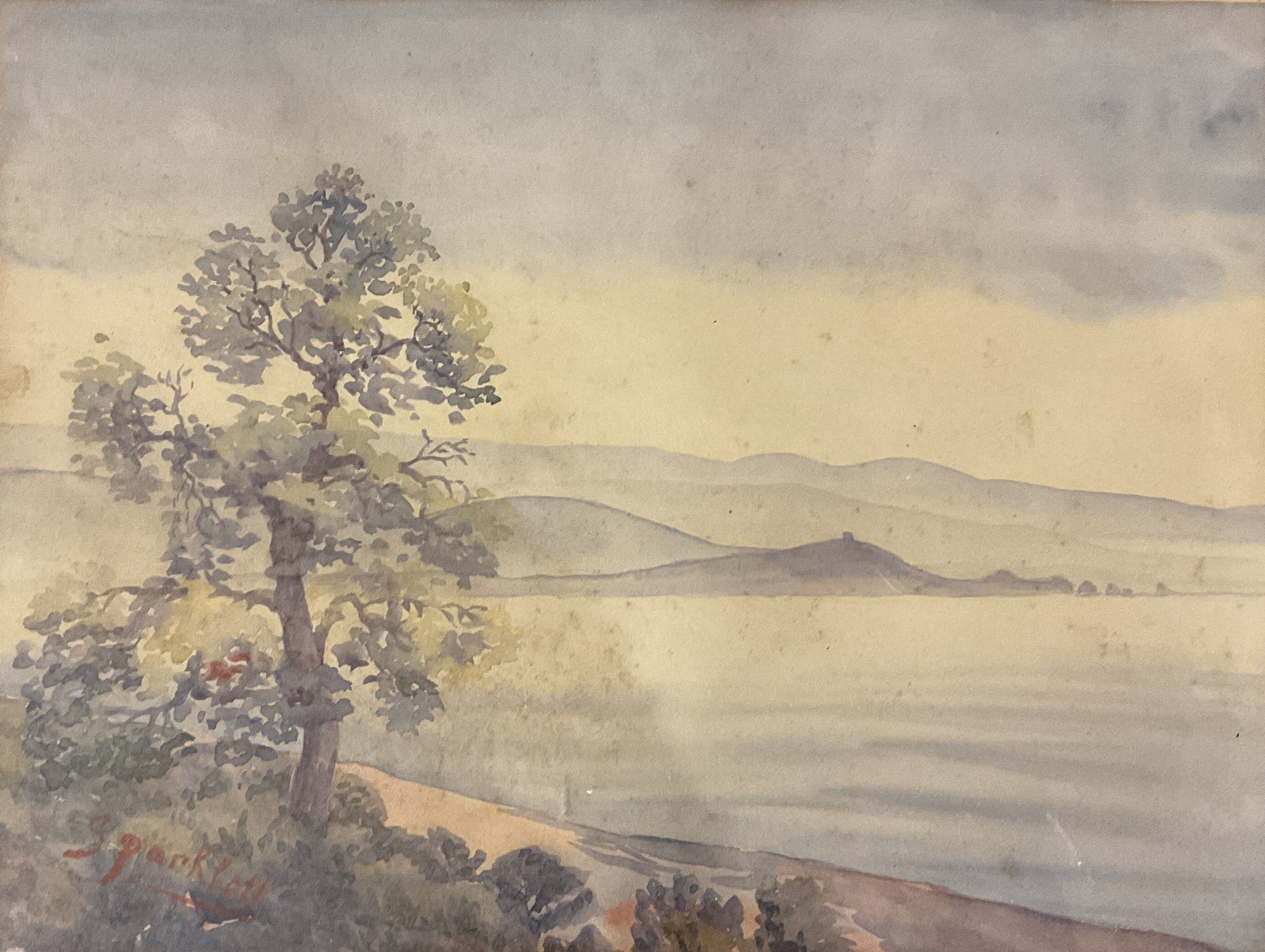 Sparklett « Plage, vue du golfe à la Tour Génoise » Aquarelle sur papier, Signée en bas à gauche H : 23 cm - L : 31,5 cm