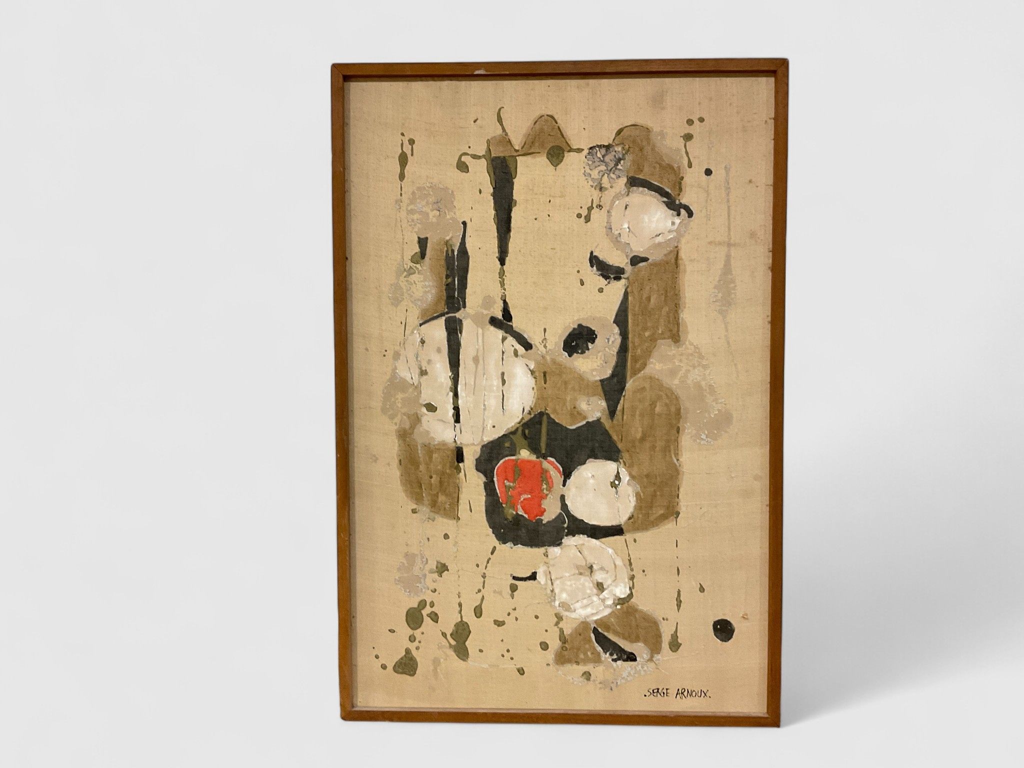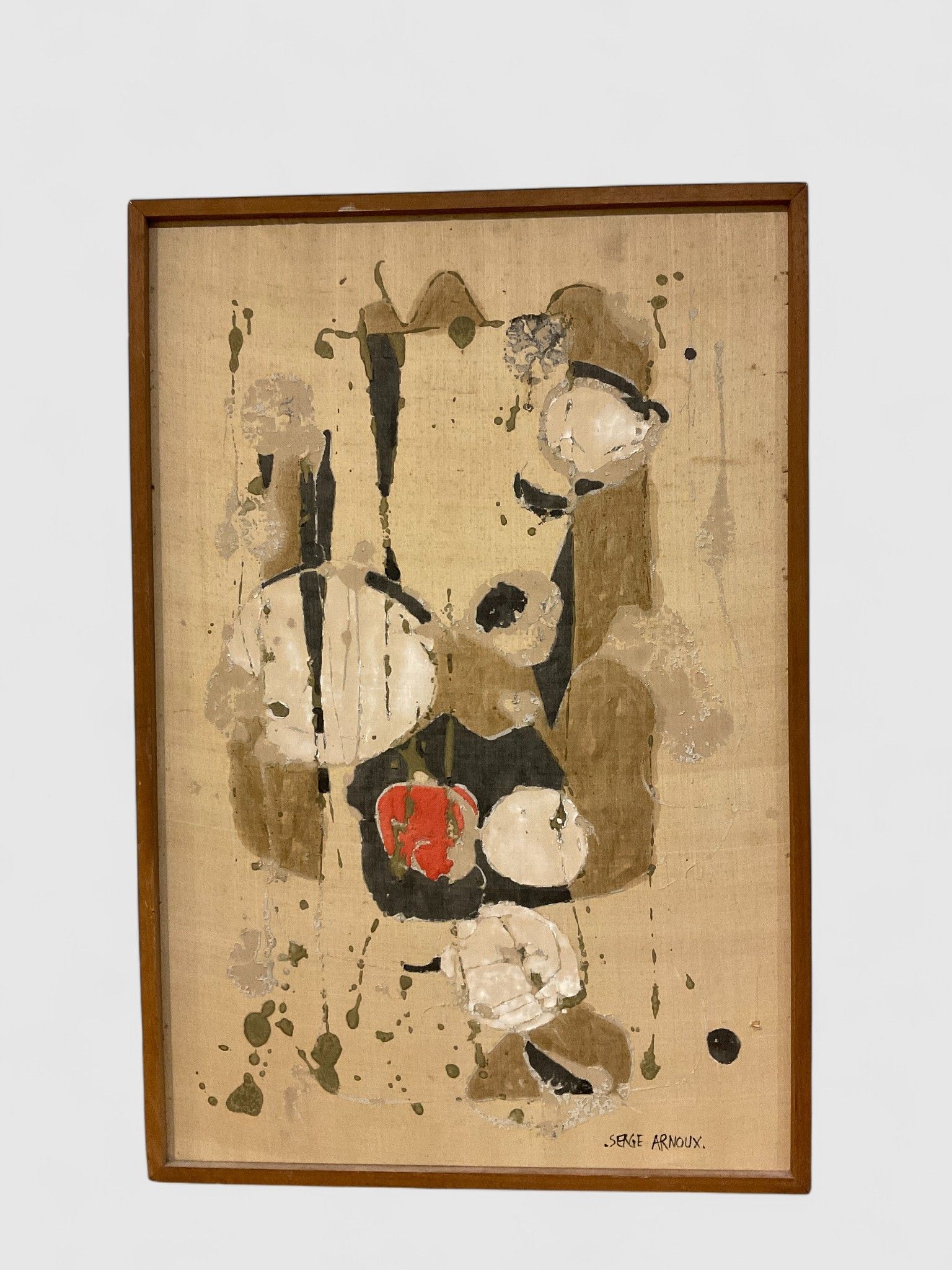 Serge AMOUX (XXe siècle) « Composition abstraite », vers 1950/1960 Huile sur tissu, Signée en bas à droite ; H : 59 cm - L : 39 cm