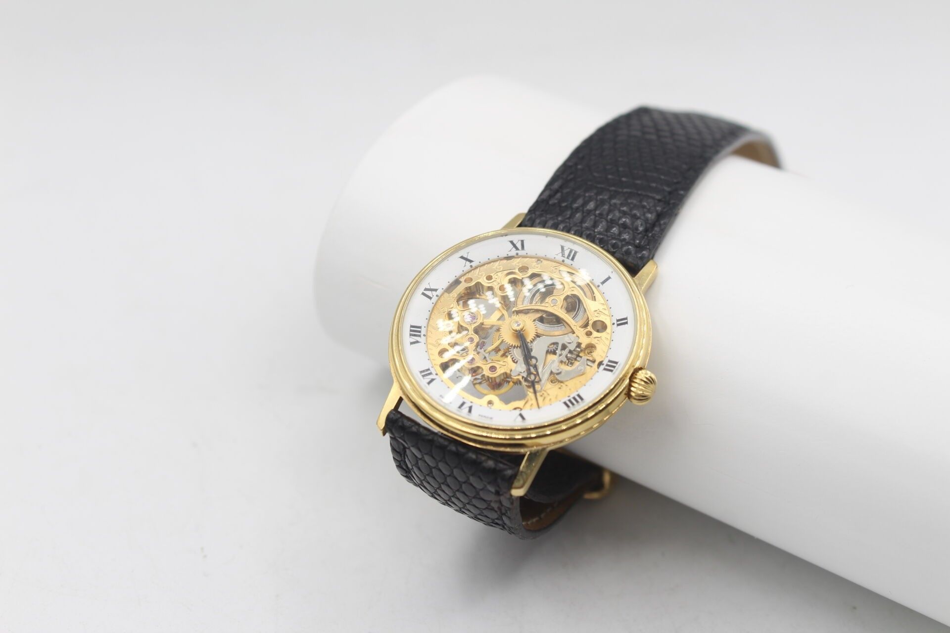 BUCHERER Montre squelette bracelet homme extra plate ref. 7040 502, avec bracelet à boucle déployante Cartier en lézard noir, fonctionnelle - LES BIJOUX, OBJETS ET EFFETS PRECIEUX NE SONT JAMAIS CONSERVES A L'ETUDE MAIS DANS DES COFFRES BANCAIRES
