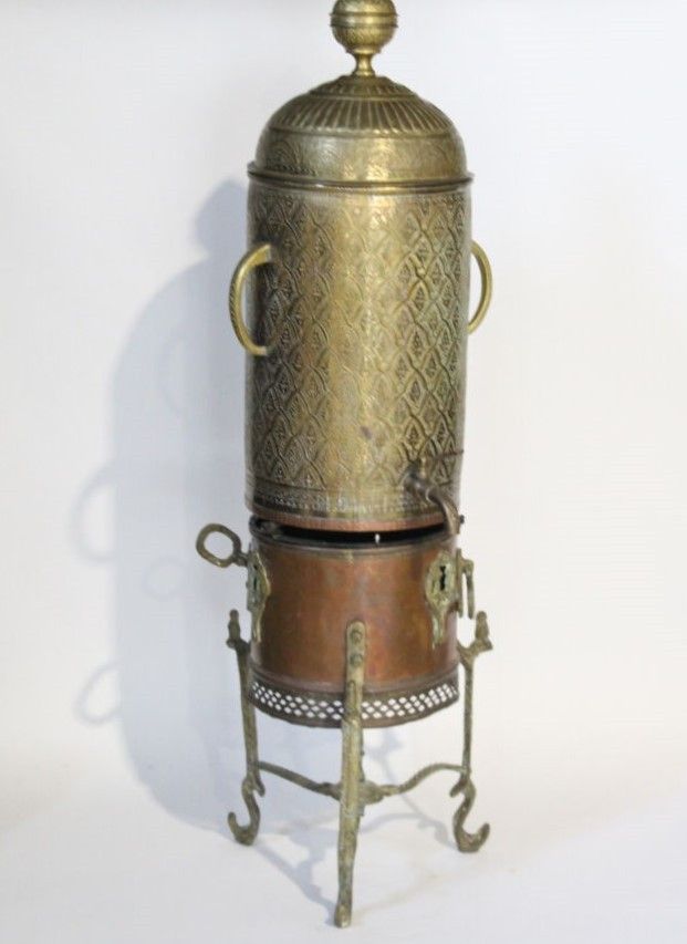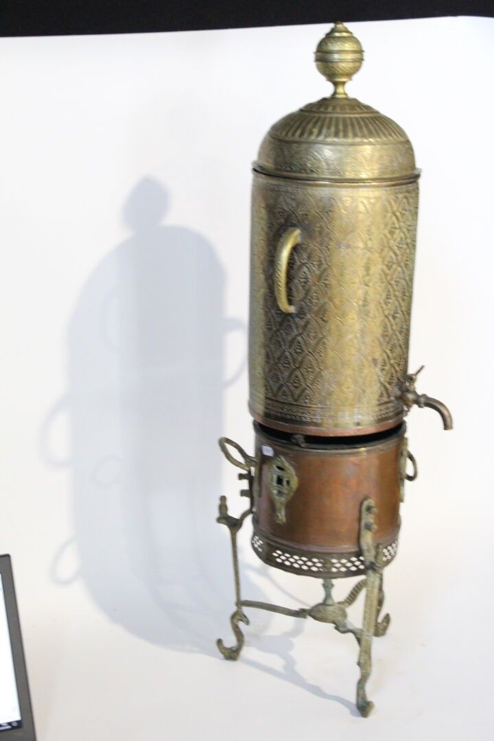 Samovar africain en laiton, H.92cm. Pied à refixer.