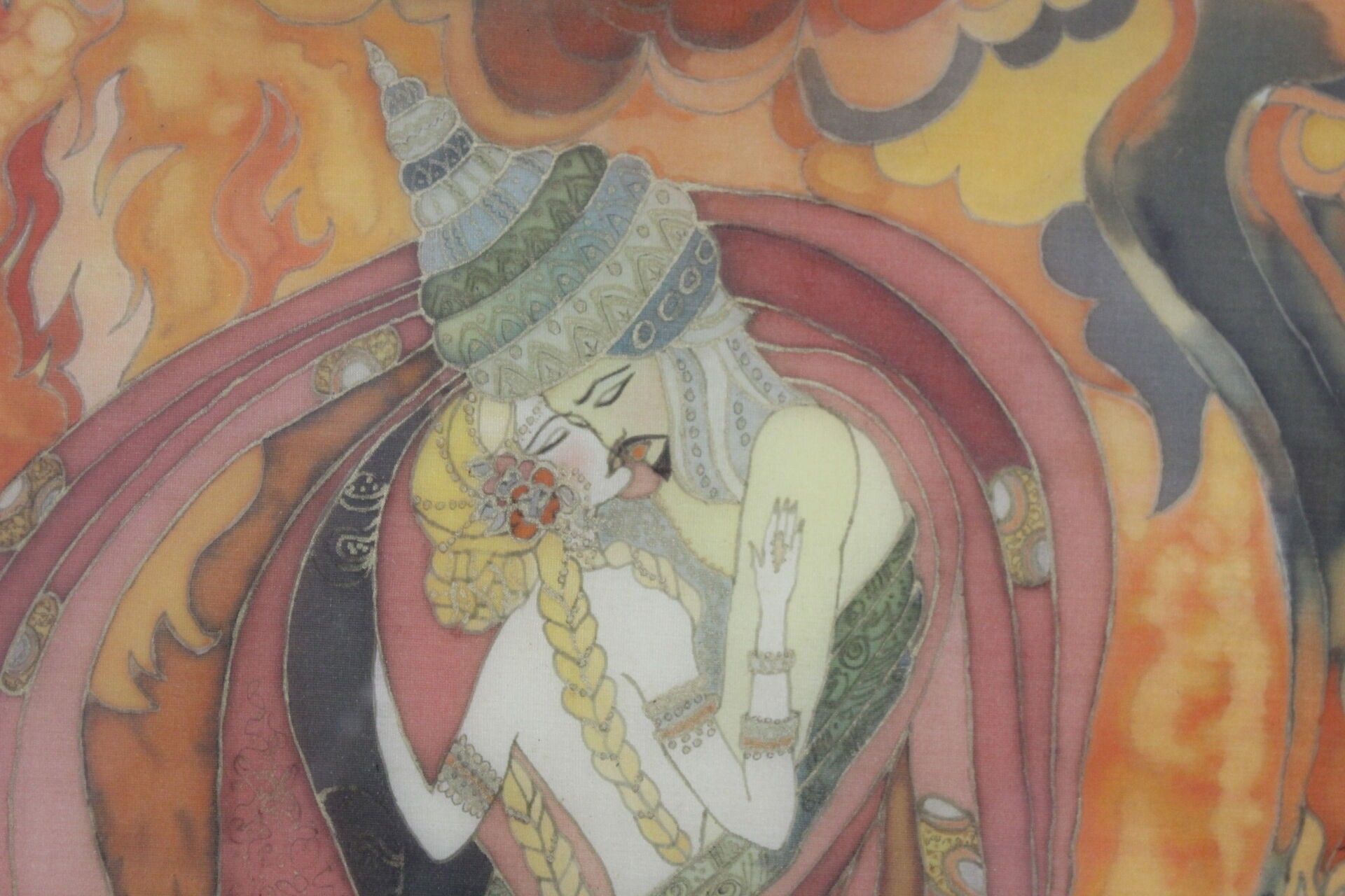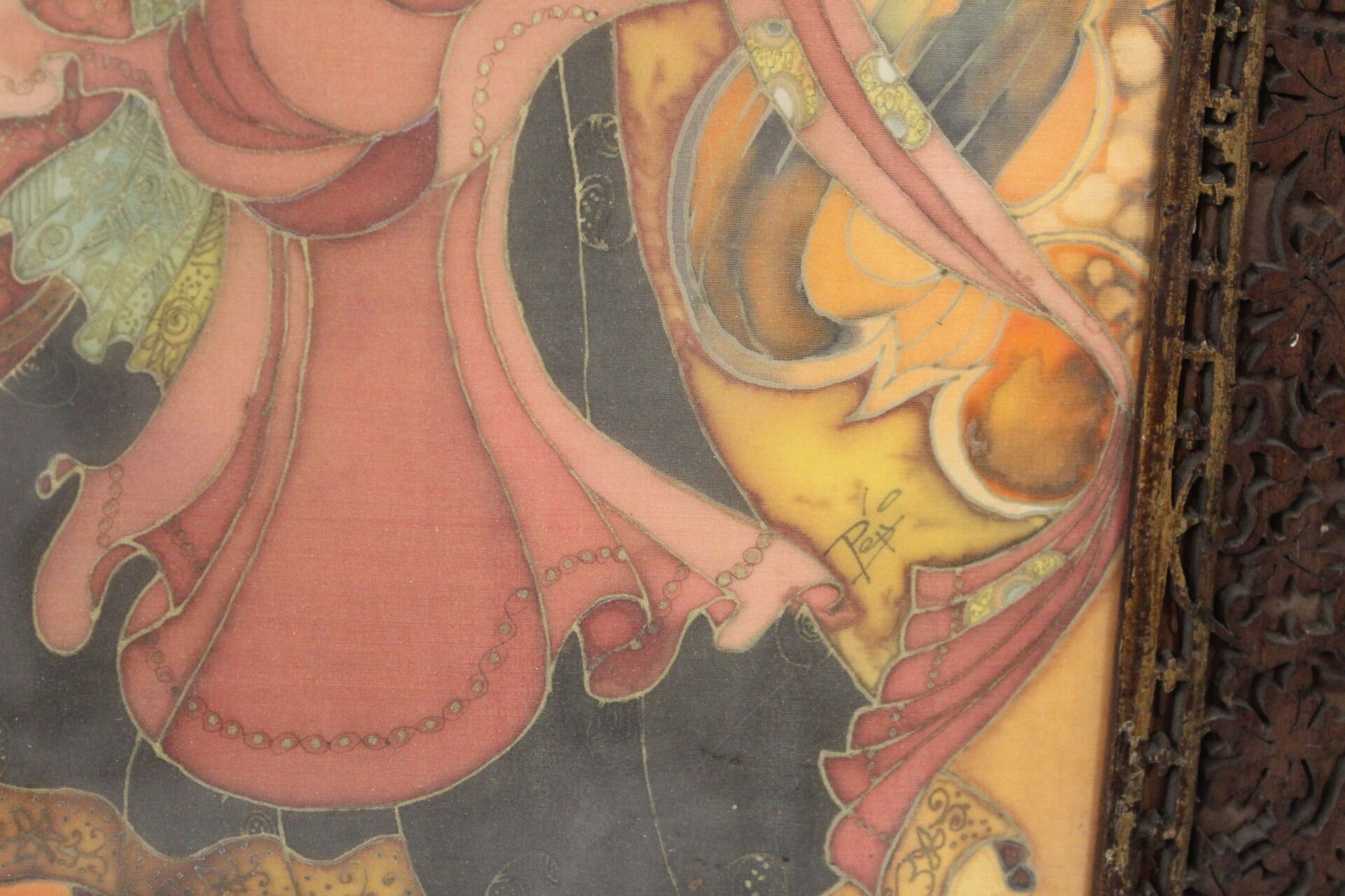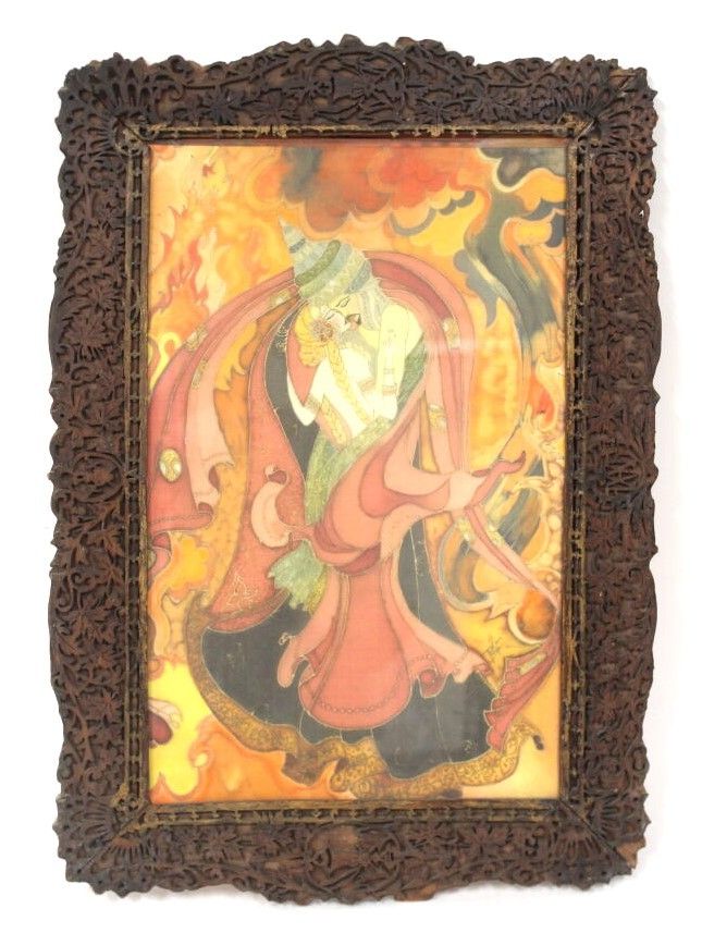 Peinture sur soie indienne cadre en bois ajouré 43 X 27 CM h…