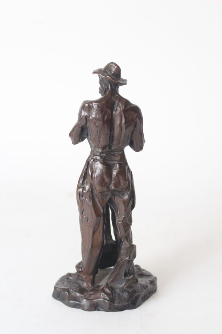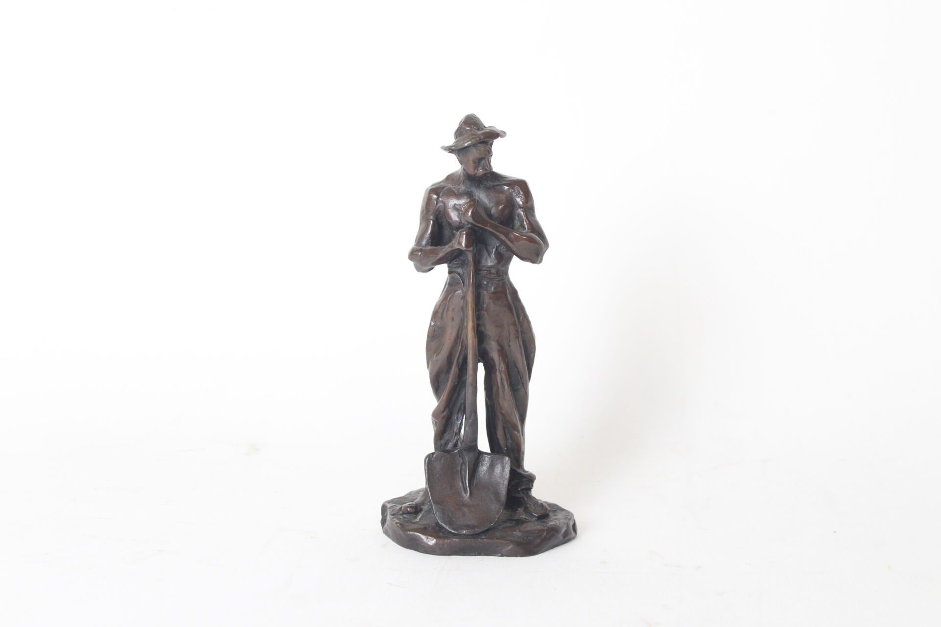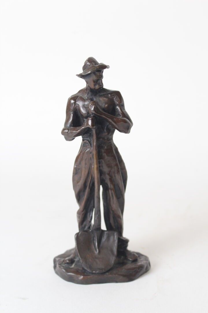 DALOU Aimé Jules. (1838-1902). « Le terrassier s'appuyant sur sa pelle ». Epreuve en bronze à patine brune nuancée. H.19,5 cm