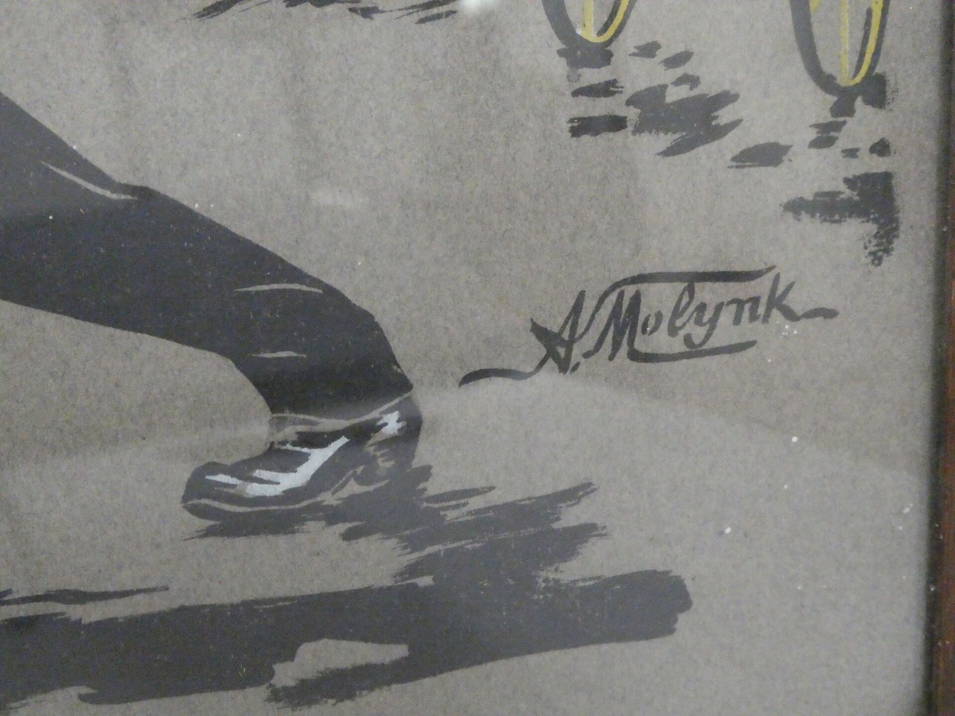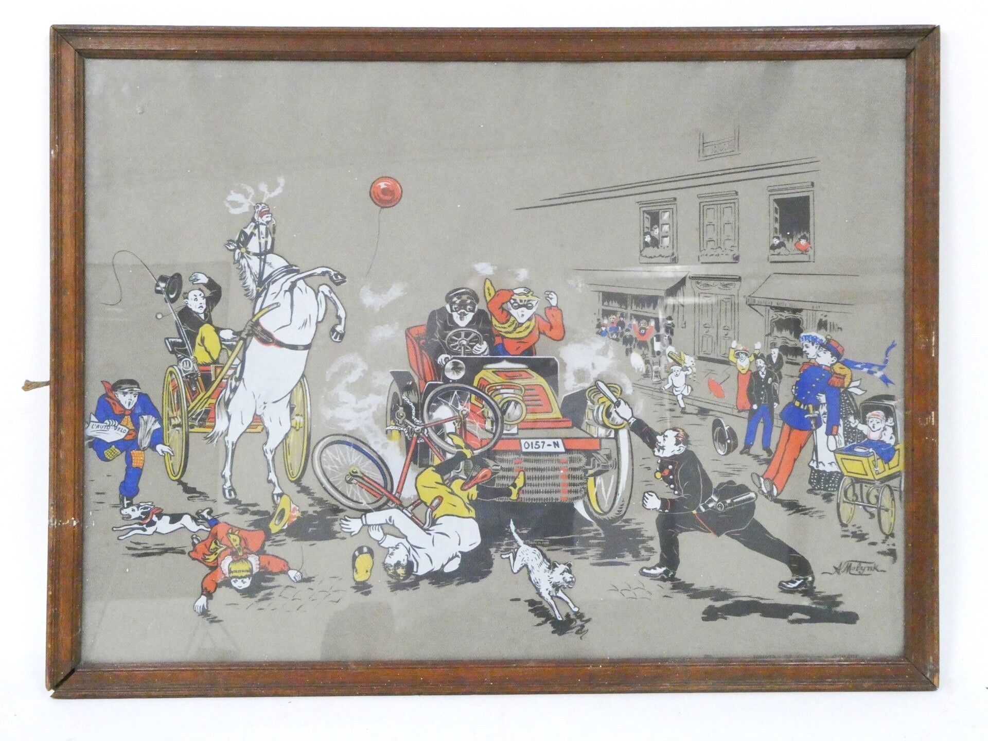 A. MOLYNK (XXème)- "Le danger des voitures" - estampe au poc…