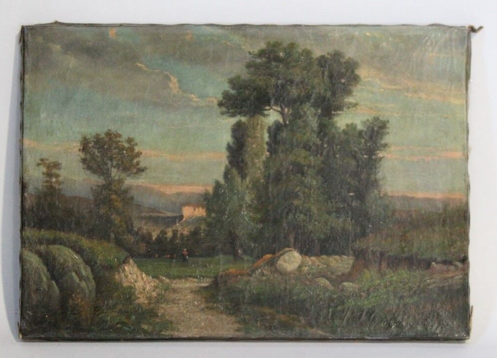 Octave Ravenal. Paysage animé, Ecole française XIXe, daté 18…