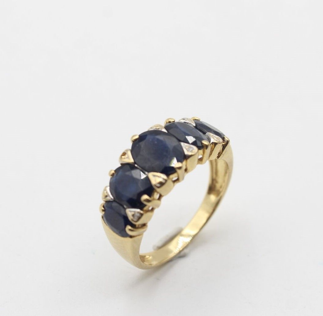 Bague en or jaune 750°°° ornée de 5 saphirs ovales et petits diamants (l'un manquant), poids 5g TDD 55 - LES BIJOUX, OBJETS ET EFFETS PRECIEUX NE SONT JAMAIS CONSERVES A L'ETUDE MAIS DANS DES COFFRES BANCAIRES