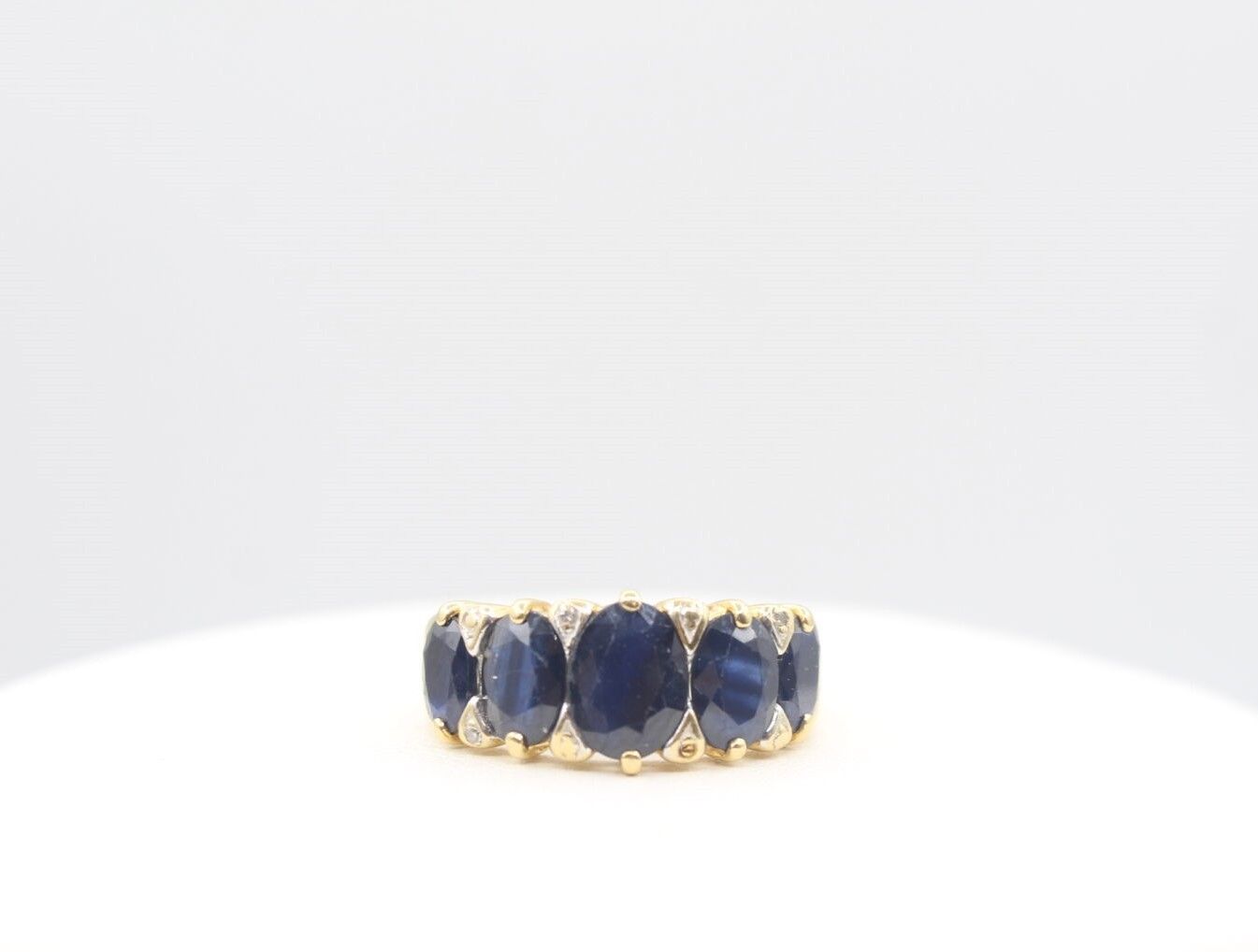 Bague en or jaune 750°°° ornée de 5 saphirs ovales et petits…