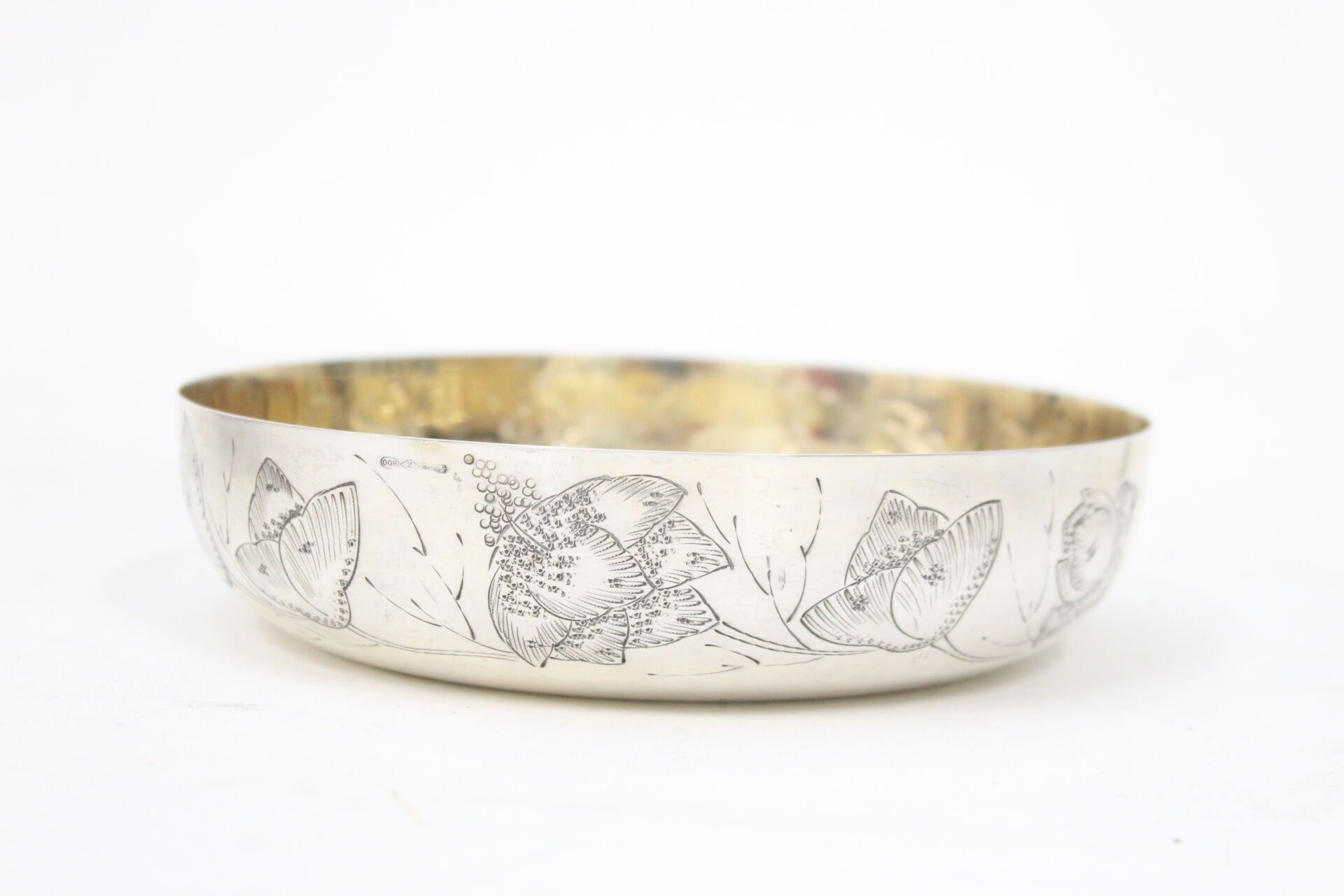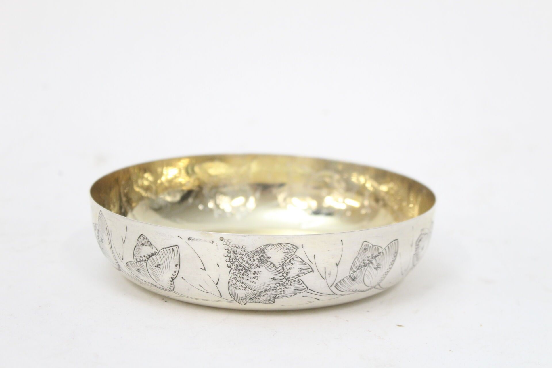 Coupelle en argent et argent doré 800°°° à décor floral Ø 15…