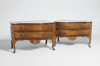 Intéressante et rare paire de commodes sauteuses à façade ga…
