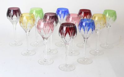 Importante suite de 12 verres sur piédouche en cristal doubl…