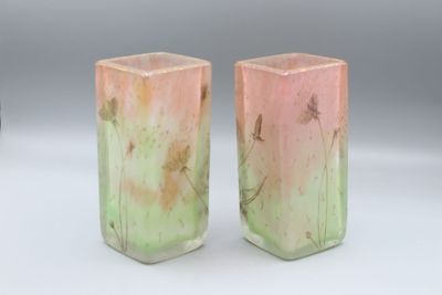 DAUM NANCY Paire de vases de section carrée à fond vert et r…