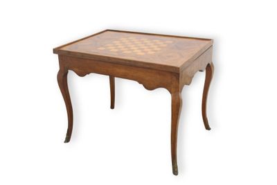 Table à jeux en placage de bois fruitier teinté, gainé d'une…