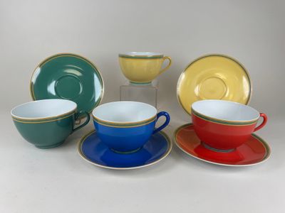 HERMES. Modèle TOUCANS. Série de quatre tasses et leurs sous…