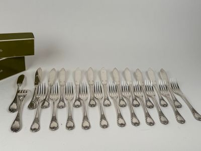 CHRISTOFLE. Modèle MARLY. Série de douze couverts à poisson …