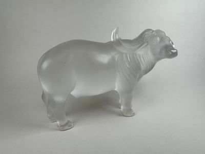 LALIQUE France. Buffle. Important sujet en cristal moulé, pr…