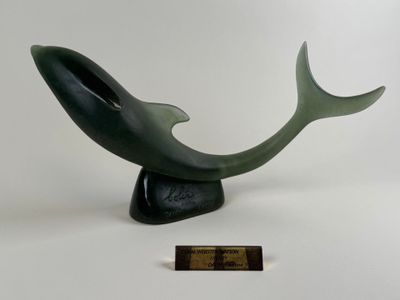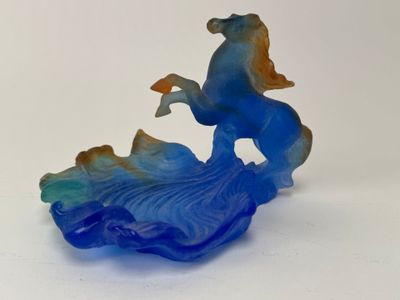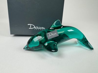 DAUM France. Dauphin. Sujet en cristal moulé et coloré.