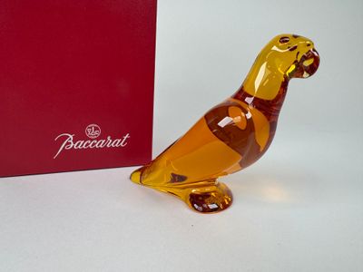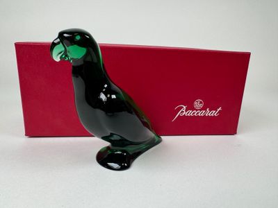 BACCARAT. Perruche. Petit sujet en cristal moulé et coloré.