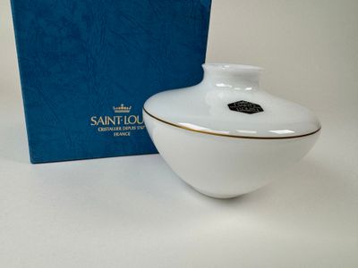 SAINT LOUIS. Petit vase en cristal opalin blanc à décor d'un…