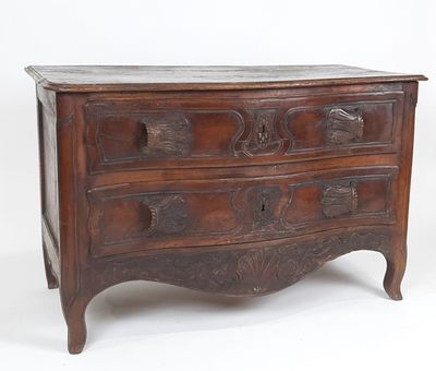 XVIIIème siècle. Commode en noyer mouluré et sculpté.